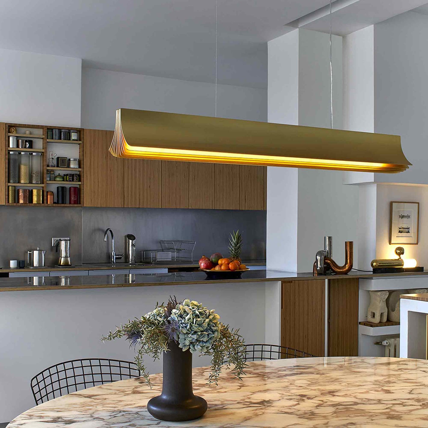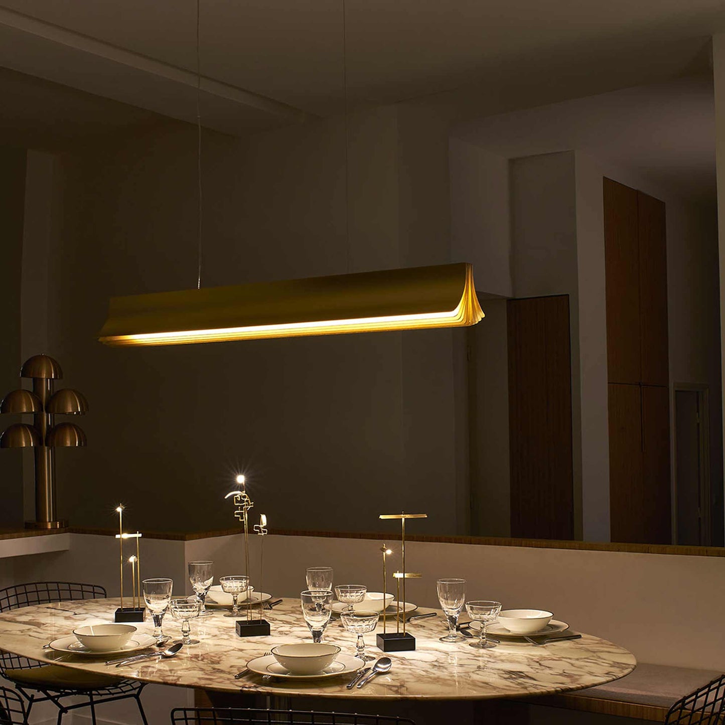 Pendant lamp in anodised aluminum. Philippe Nigro opens his personal journal to show us Respiro (Italian for breath). Lightness, sweetness, desire to be together, sharing stories, changing the world... Respiro light is good for you! For what? Everything!