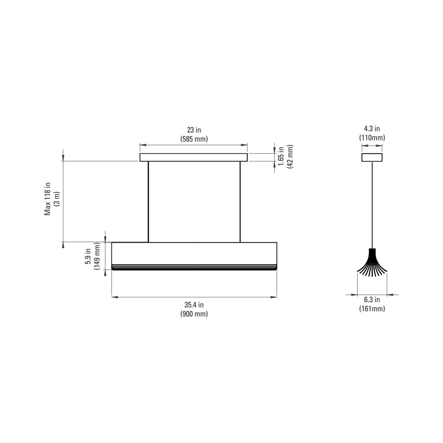 - Short: 35.4"W X 5.9"H; 125.55" max height