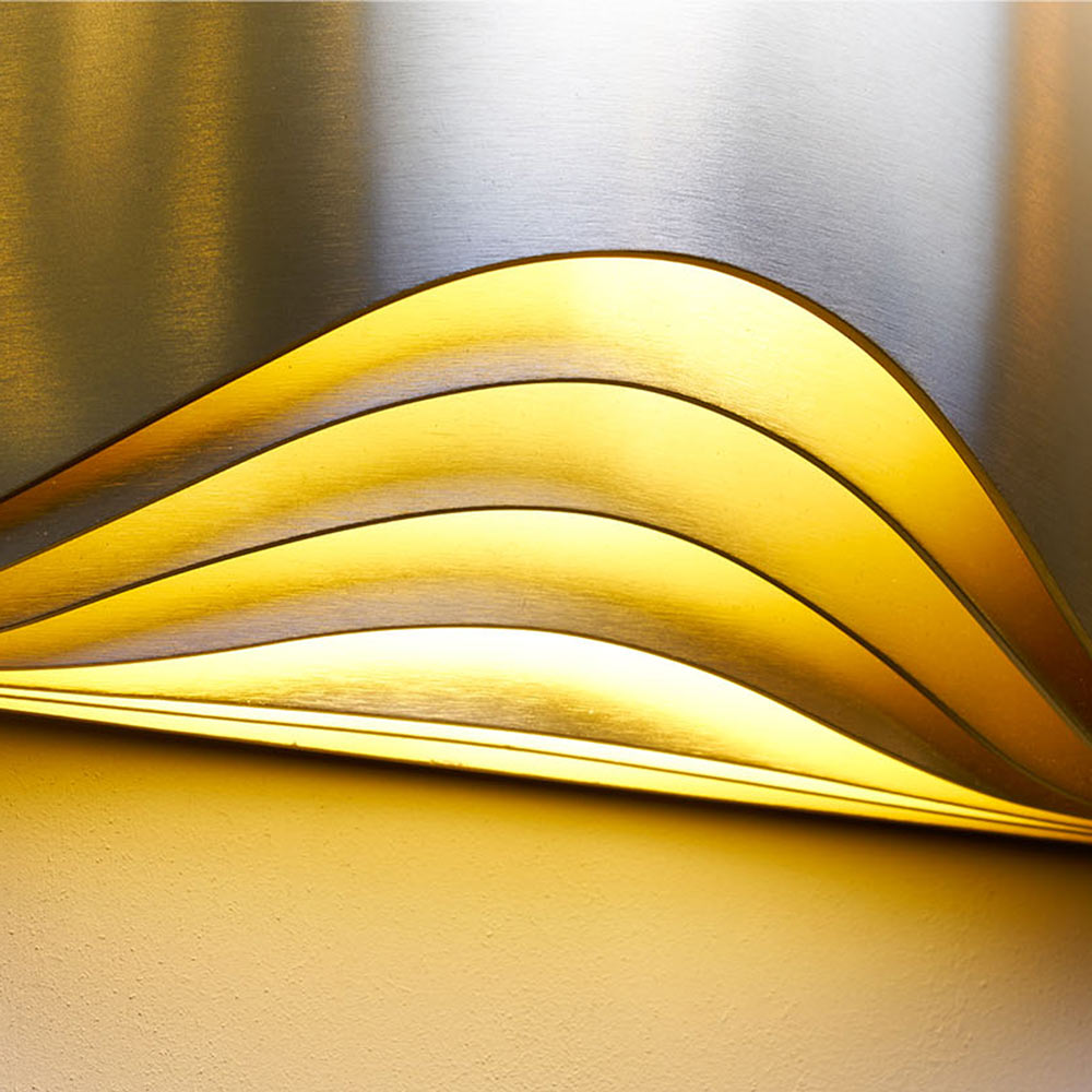 Elevate interiors with the enthralling modern glam Respiro LED Wall Light from DCW editions. Elegant undulating waves on each end create a gleaming hourglass silhouette, transforming this energy-efficient wall light into a wondrous, minimalist yet luxe statement piece.