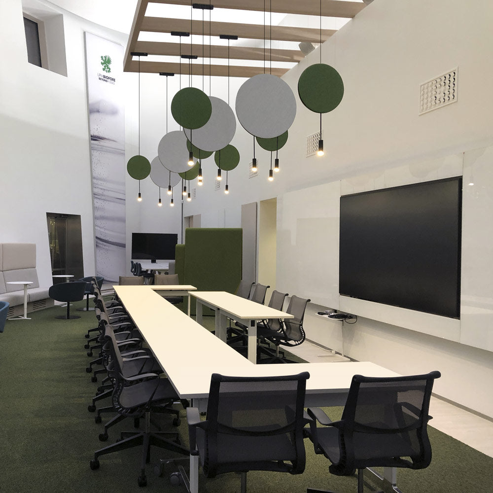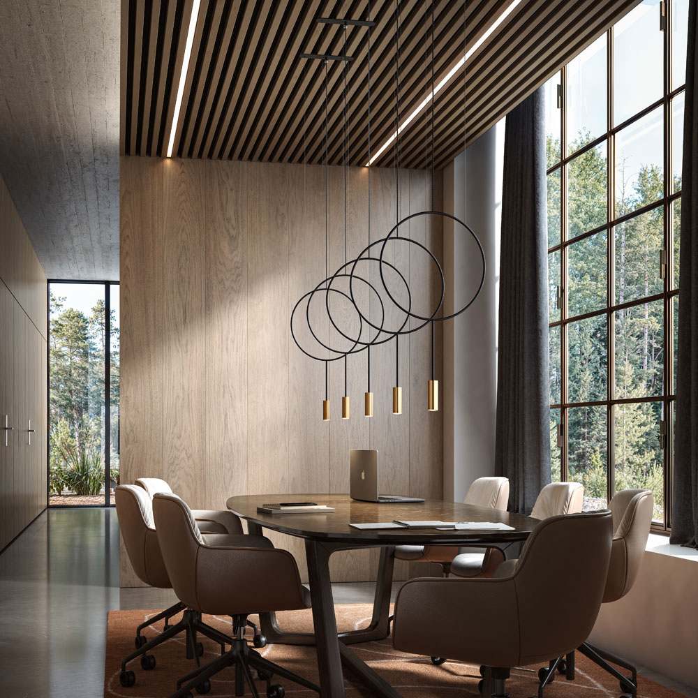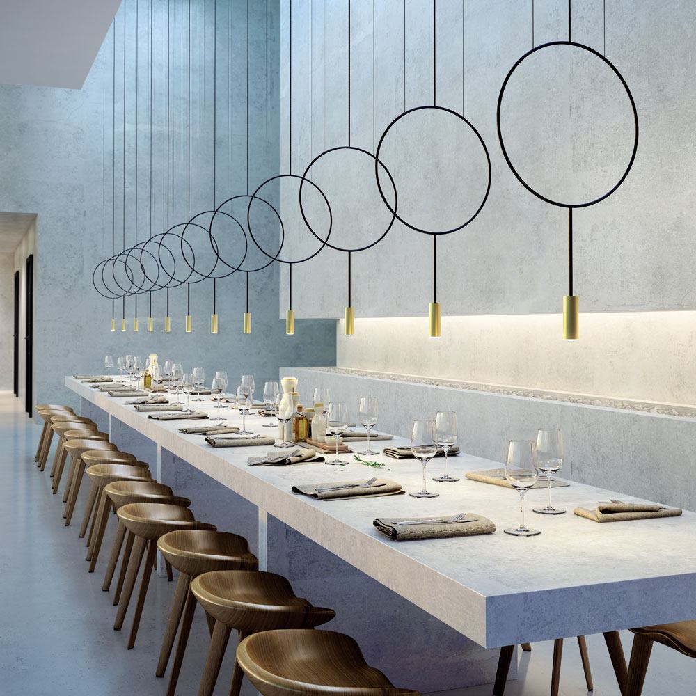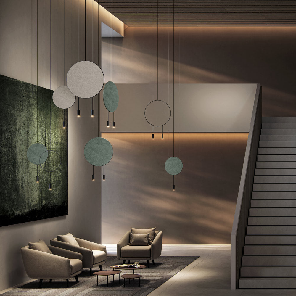 Suspended like a gentle celestial orbit, the Revolta Pendant Light from Estiluz casts a soft, enveloping glow that transforms any room with its elegant simplicity. Cylindrical heads and diffusers create a warm, inviting ambiance, while the adjustable height lets you craft the perfect atmosphere, whether you’re hosting a gathering or seeking solitude. An optional sound-absorbing panel completes the design, adding both beauty and tranquility to your space.