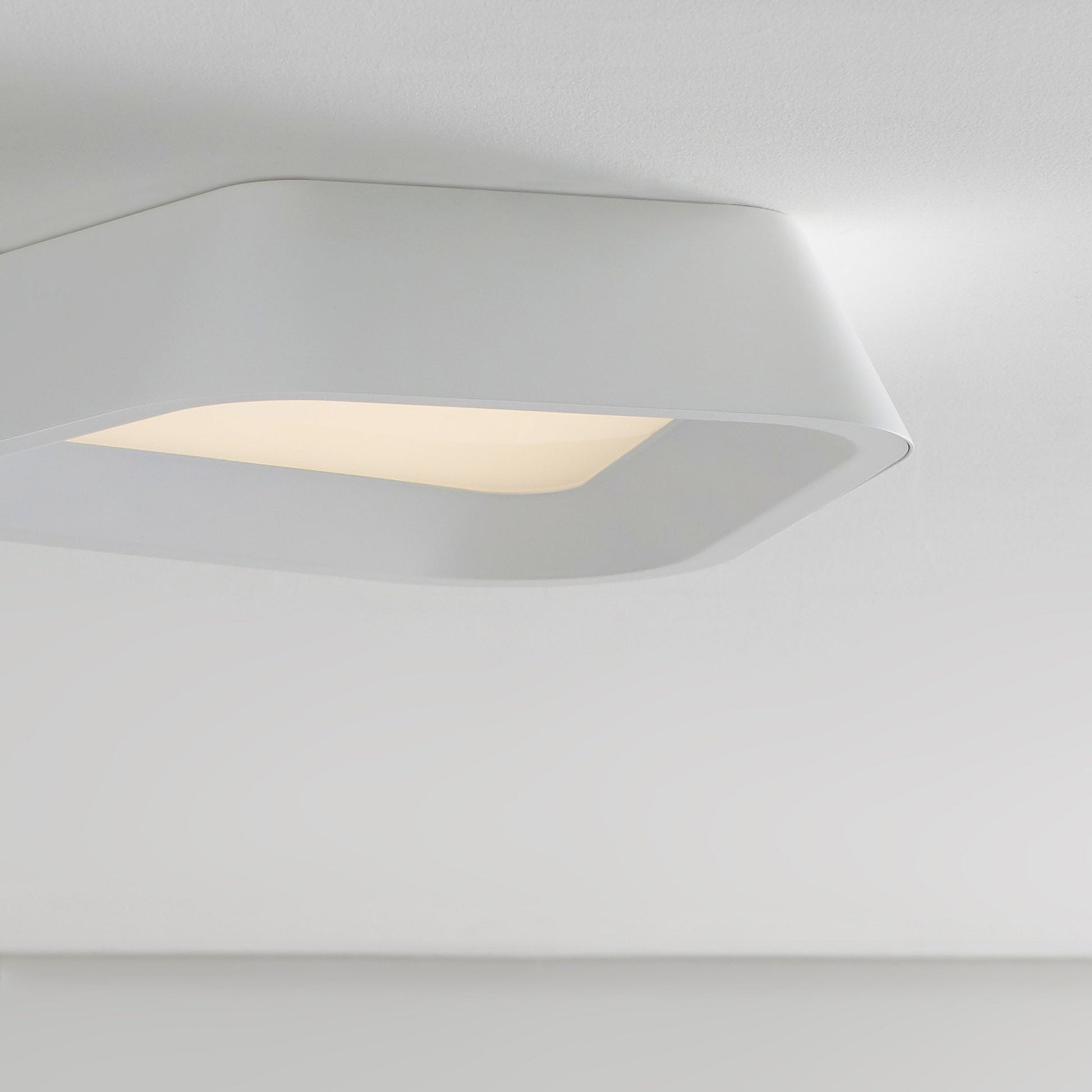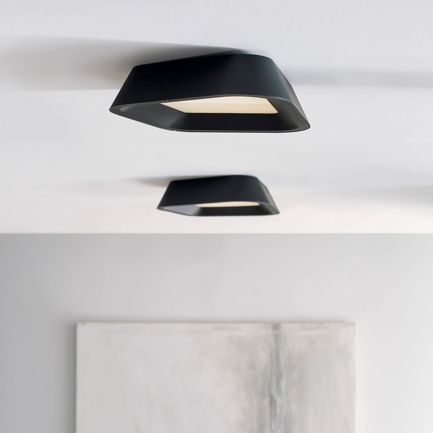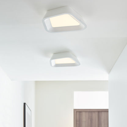 The Rhonan LED Flush Mount Ceiling Light by Sean Lavin for Visual Comfort Modern is the epitome of modern with its asymmetric stamped metal shade and matt finish. The shade undergoes a unique treatment process to add a natural rough cast texture, then is painted with your choice of matt finish to yield a dramatically modern ceiling mount. The textured white finish further enhances the modern aesthetic of this fixture. The Rohnan scales at 14" in height and 13.3" in diameter making it ideal for dining room lighting, hallway lighting, and bedroom lighting. The Rhonan ships with an integrated fully-dimmable LED saving you time and money.