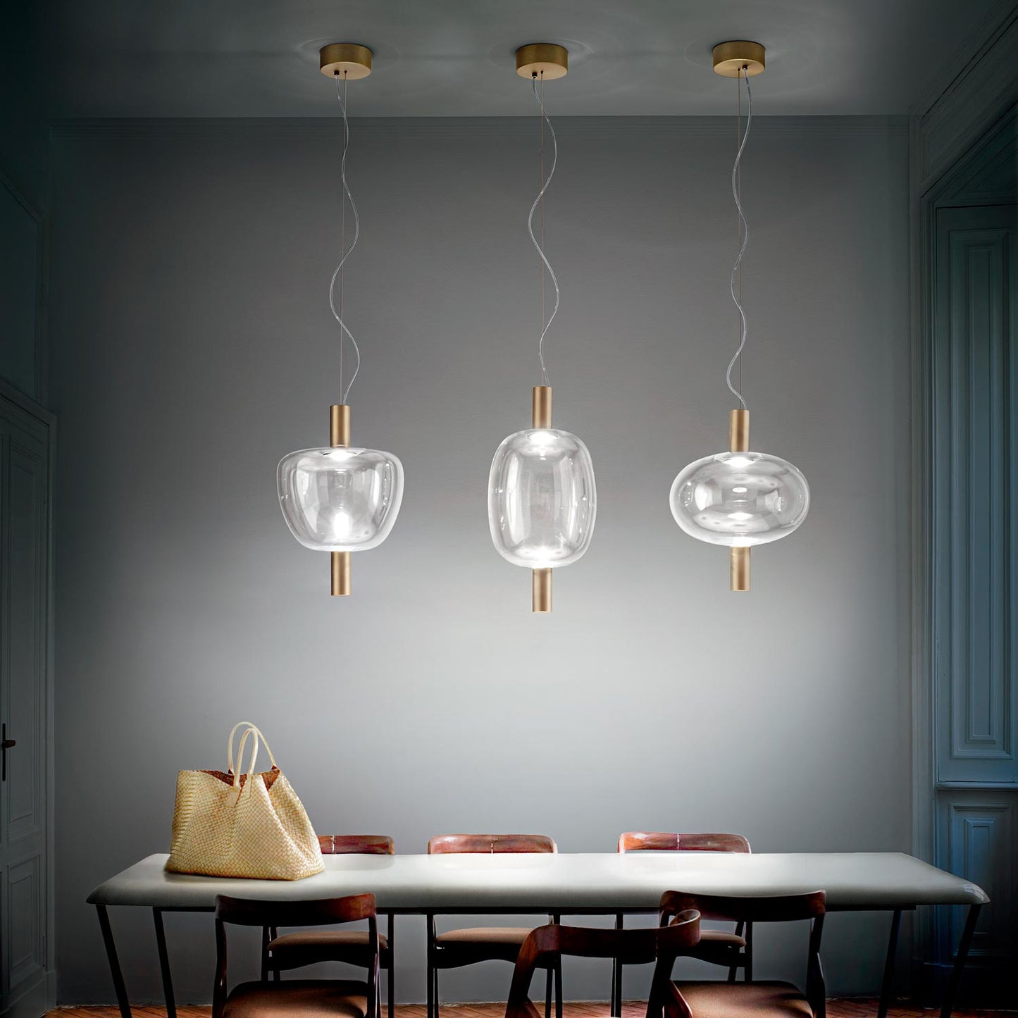 Gentle in design yet rife with the fine artistry of gallery influence, the Riflesso SP 2 LED Pendant Light from Vistosi becomes an eye-catching addition to modern spaces. Custom rooms and hallways embrace the delicate rounded glass shade and tubular metal accents of a fixture that contributes style sensibility as well as artisan aesthetics while offering energy-efficient illumination.