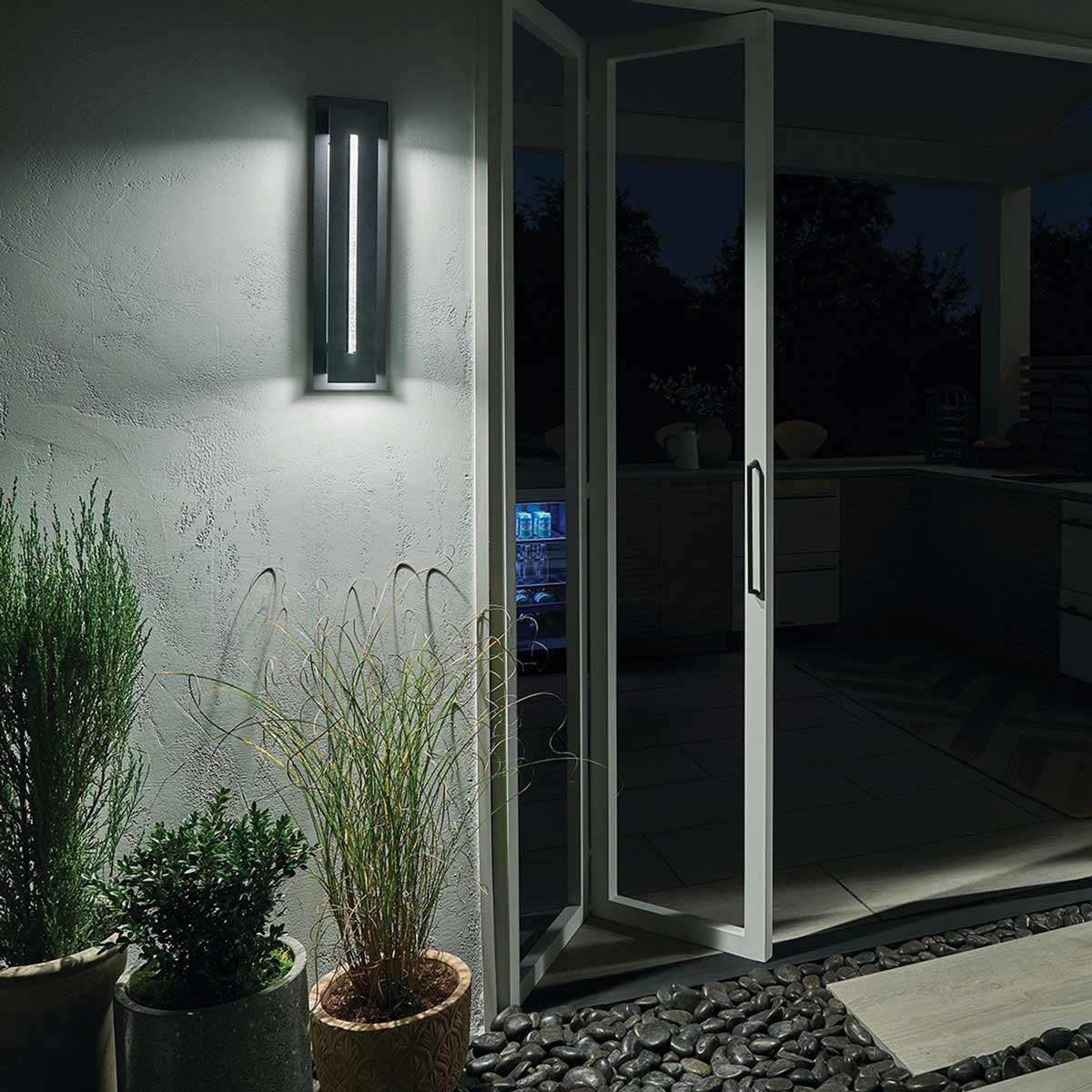 The River Path LED Wall Light features a contemporary look with its clear seeded glass and olde bronze finish. It works in several aesthetic environments, including modern and transitional.