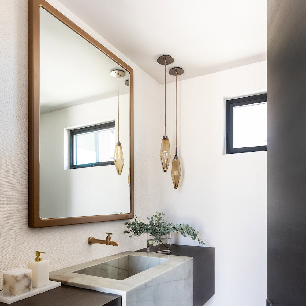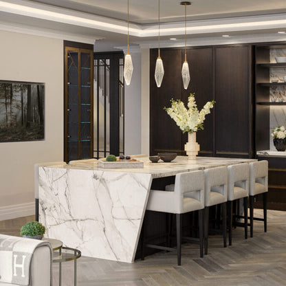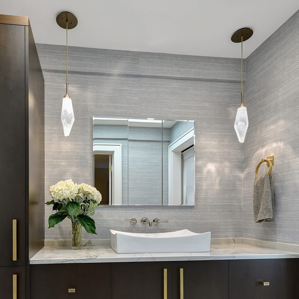 Natural quartz creates the inspiration for the artisan blown Rock Crystal LED Pendant Light from Hammerton Studio. Chic angularity brings a sense of structure, while LED illumination is bright and energy efficient, offering stylish glow over bedrooms, living areas, and kitchens.