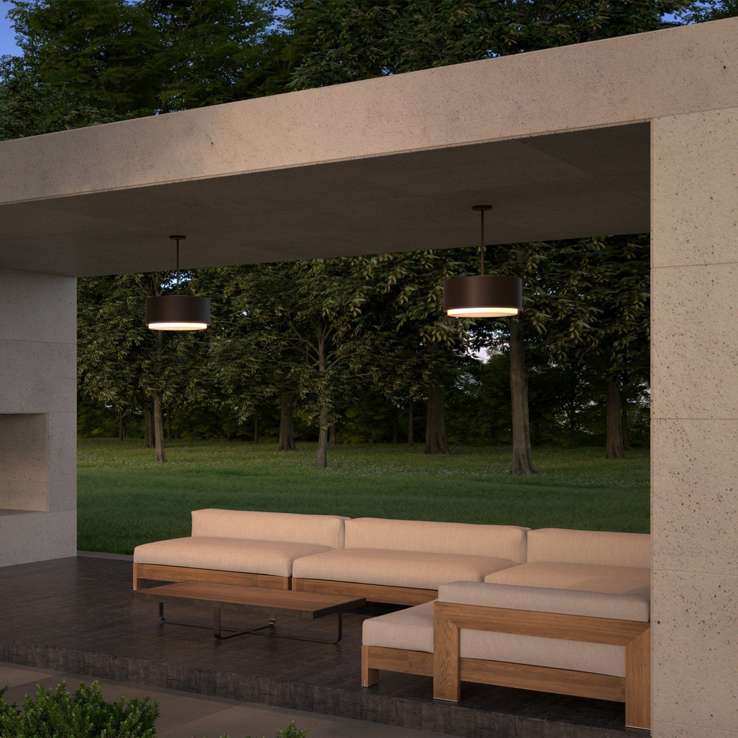 The Roton Outdoor LED Pendant Light makes an impressive design statement in the simplicity and scale of its cylindrical geometry. Featuring a spun aluminum body and subtle diffuser, The Roton Outdoor LED Pendant Light houses a powerful LED light source designed to deliver softly diffused down lighting for controlled and distinctive illumination. Available in two widths, 12 inches and 18 inches.