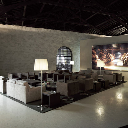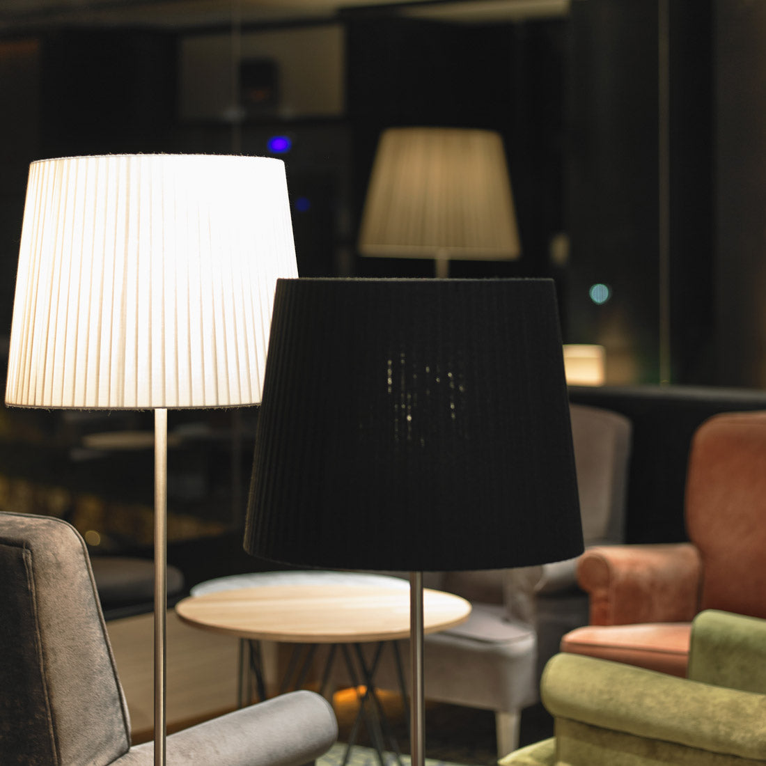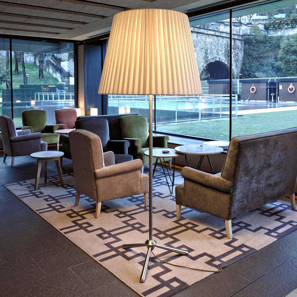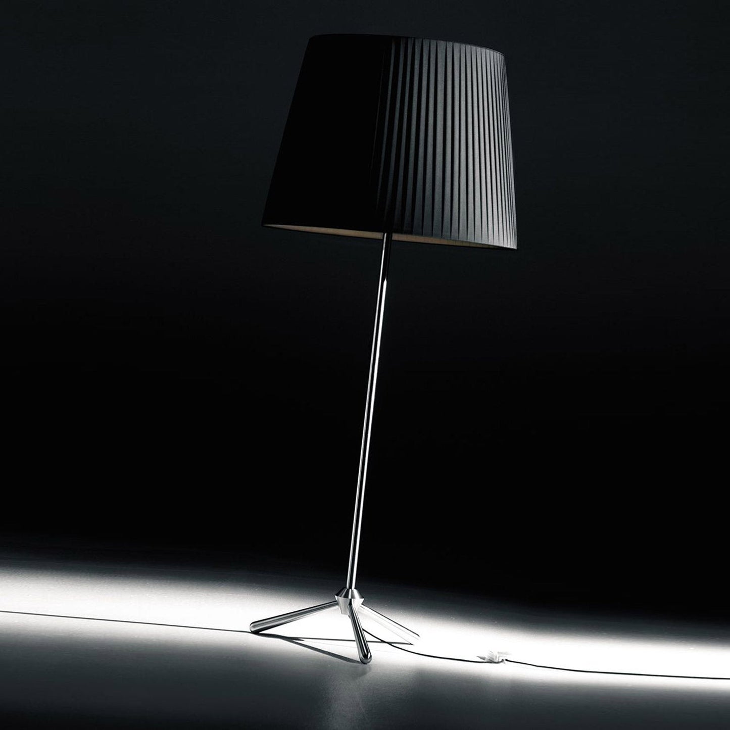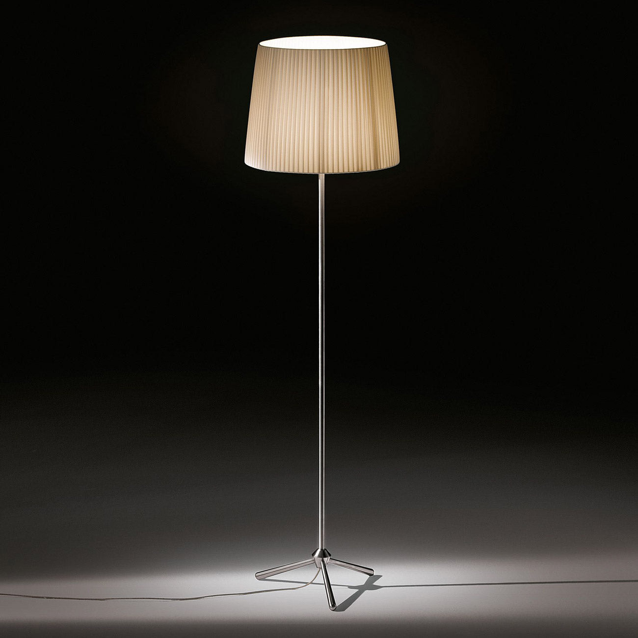 A slender frame with tailored elements elevates the Royal F Floor Lamp from B.Lux into a sophisticated contemporary aesthetic. A pleated shade crowns a tripod-like stand, presenting an artsy look and feel to modern-leaning interiors.