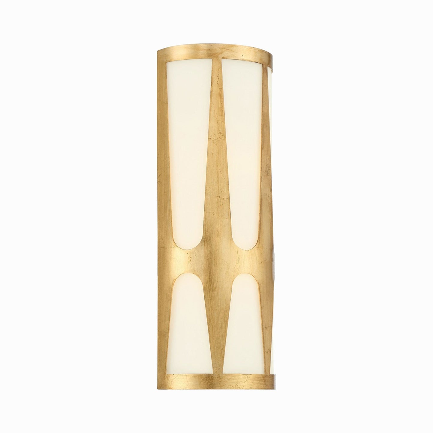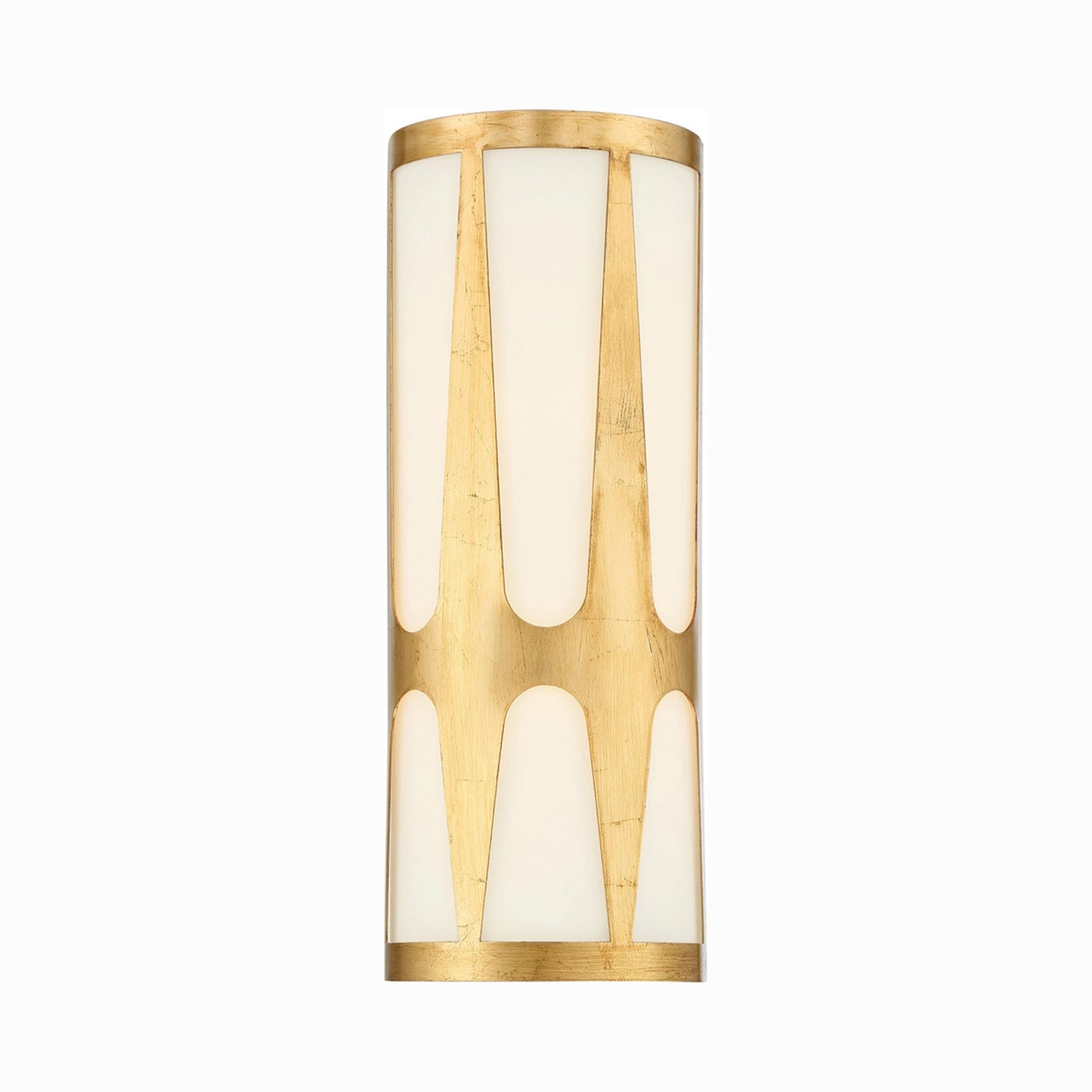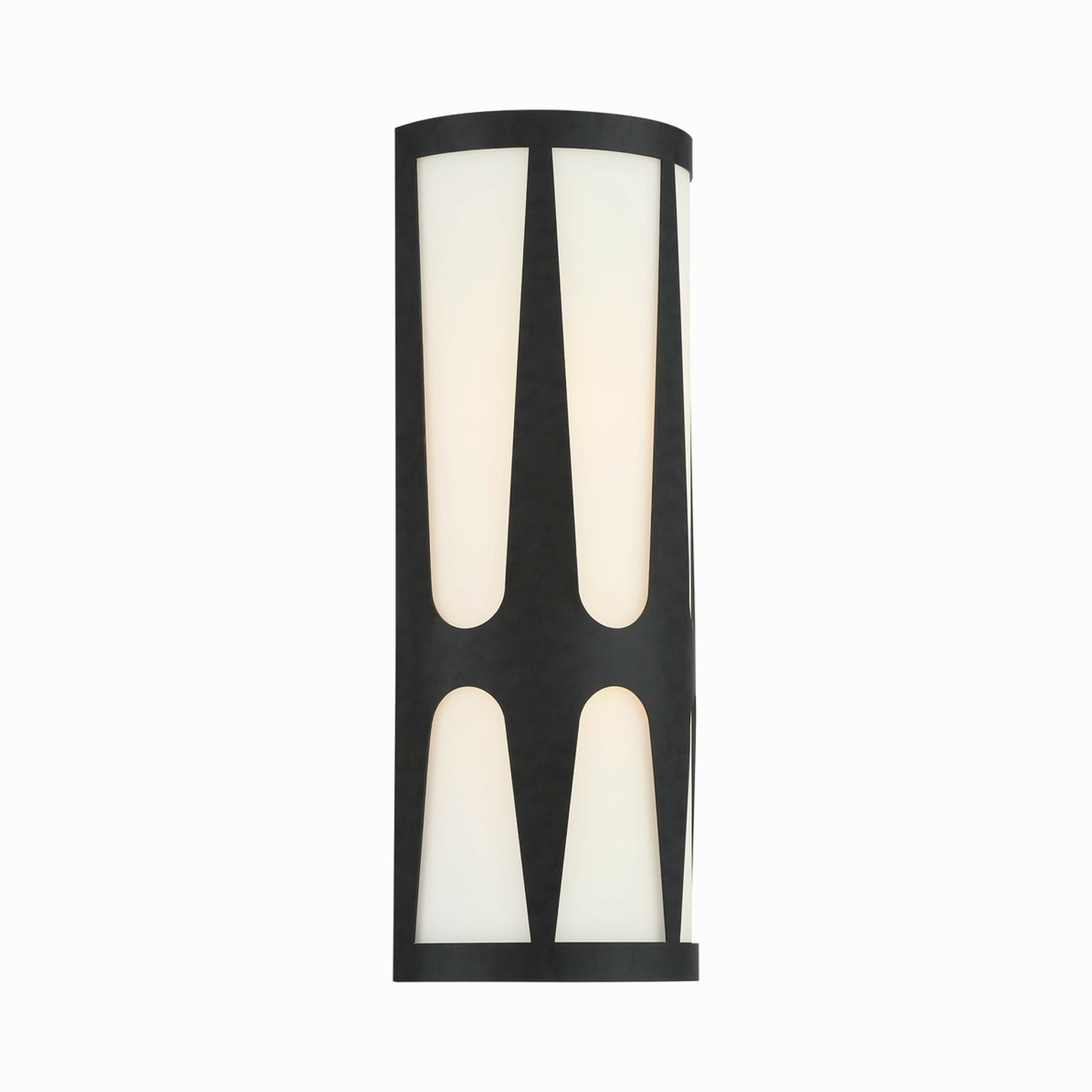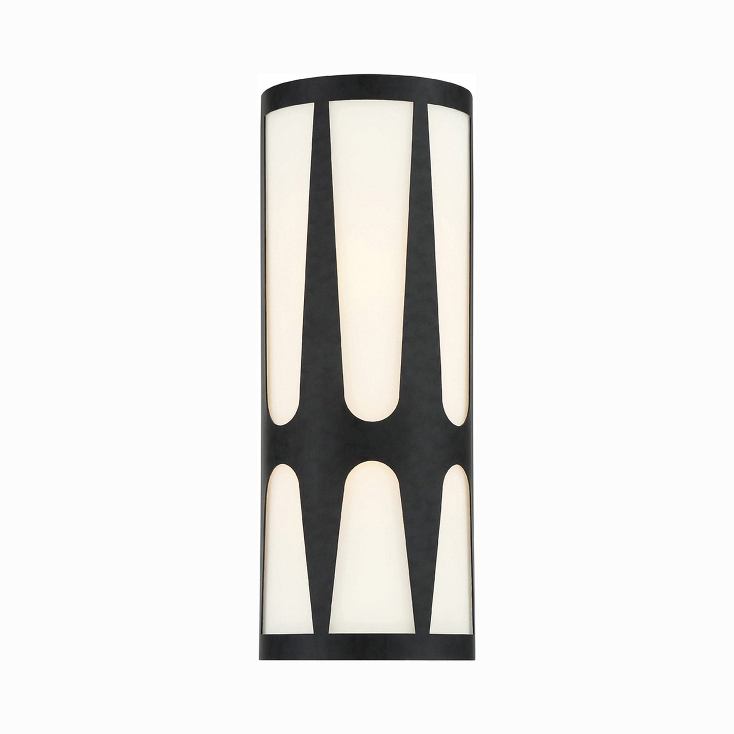 With a dramatic design in contrast and patterning, the Royston Wall Light from Crystorama energizes a hallway or entryway as it conforms to both modern and transitional design style motifs. Alluringly curved metal patterning is precision-cut, with framing contributing to a consistent design. This fixture features a white silk shade under metal overlay, perfect for filtering soft illumination.