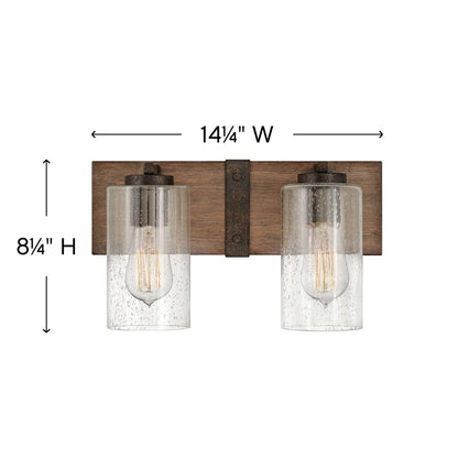 - 2-Light: 14.25"W X 8.25"H; 5.5" Extension