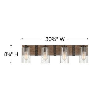 - 4-Light: 30.75"W X 8.25"H; 5.5" Extension