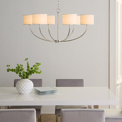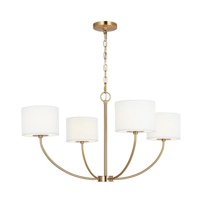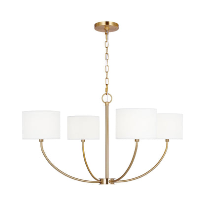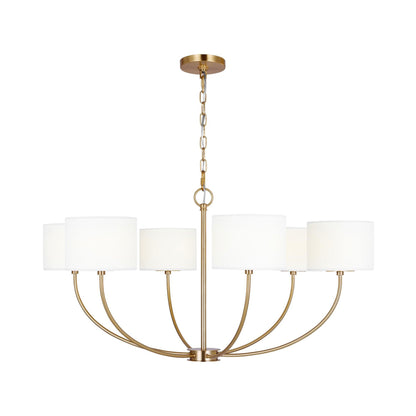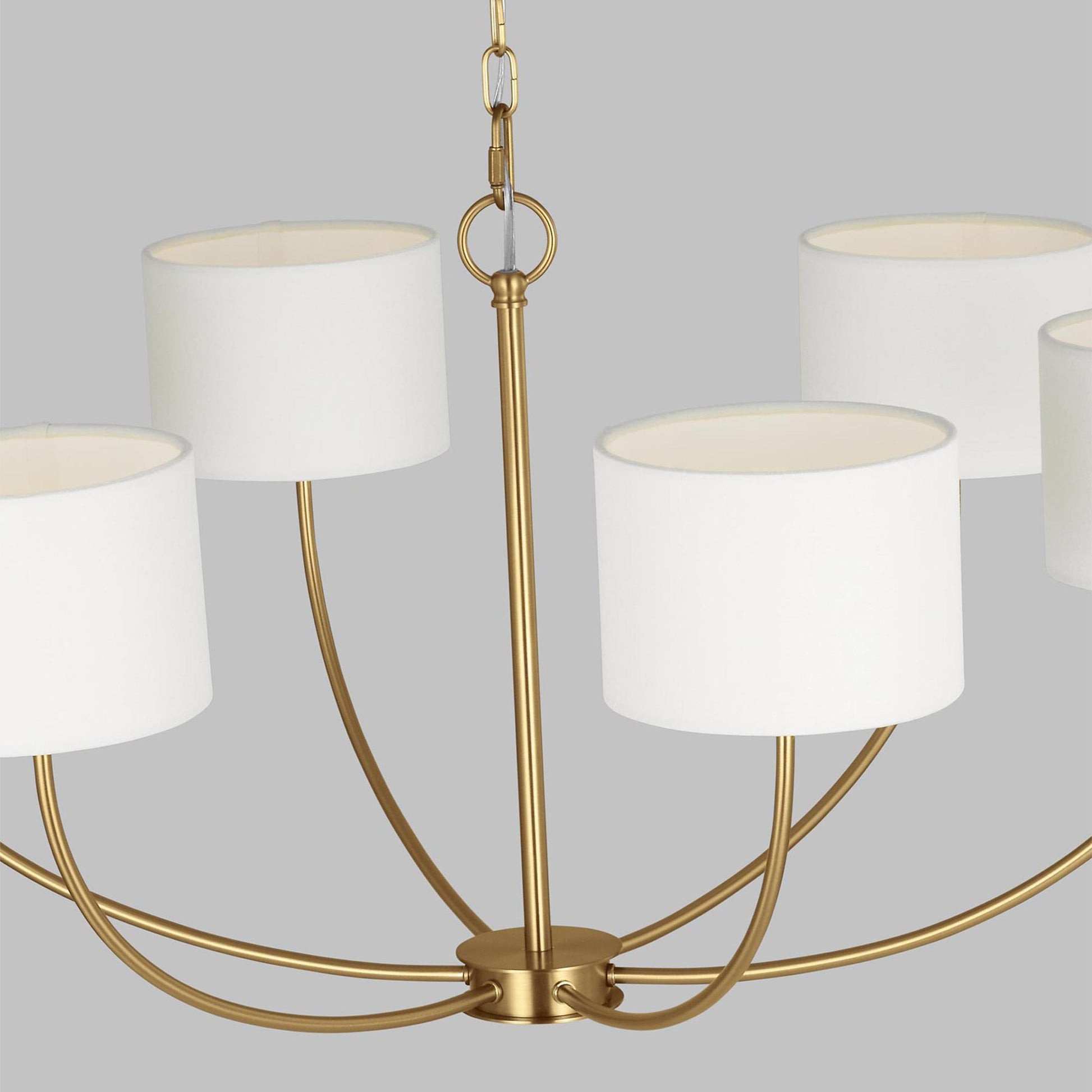 Inspired by Kate Spade whimsical geometry and playful lines, Sawyer has a striking silhouette with graphically taped shades. The Sawyer Chandelier by Kate Spade New York in burnished brass/polished nickel is a wide playful chandelier with arched lines and wide, graphically taped shades. This simple and graphic chandelier would be great over a dining table or nook, as well as in a living room scenario.