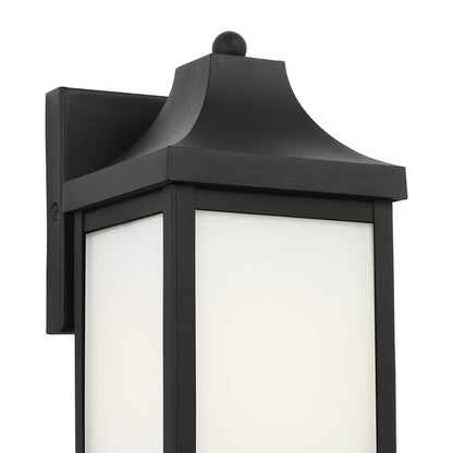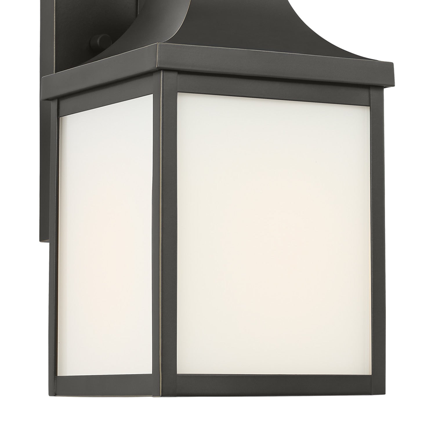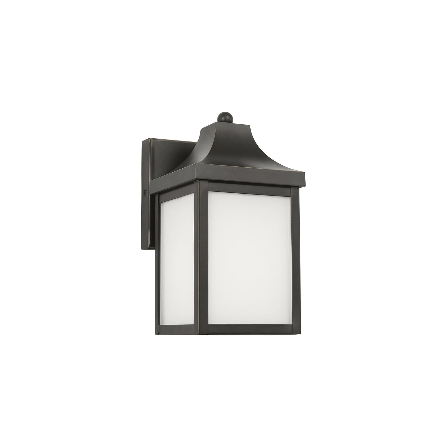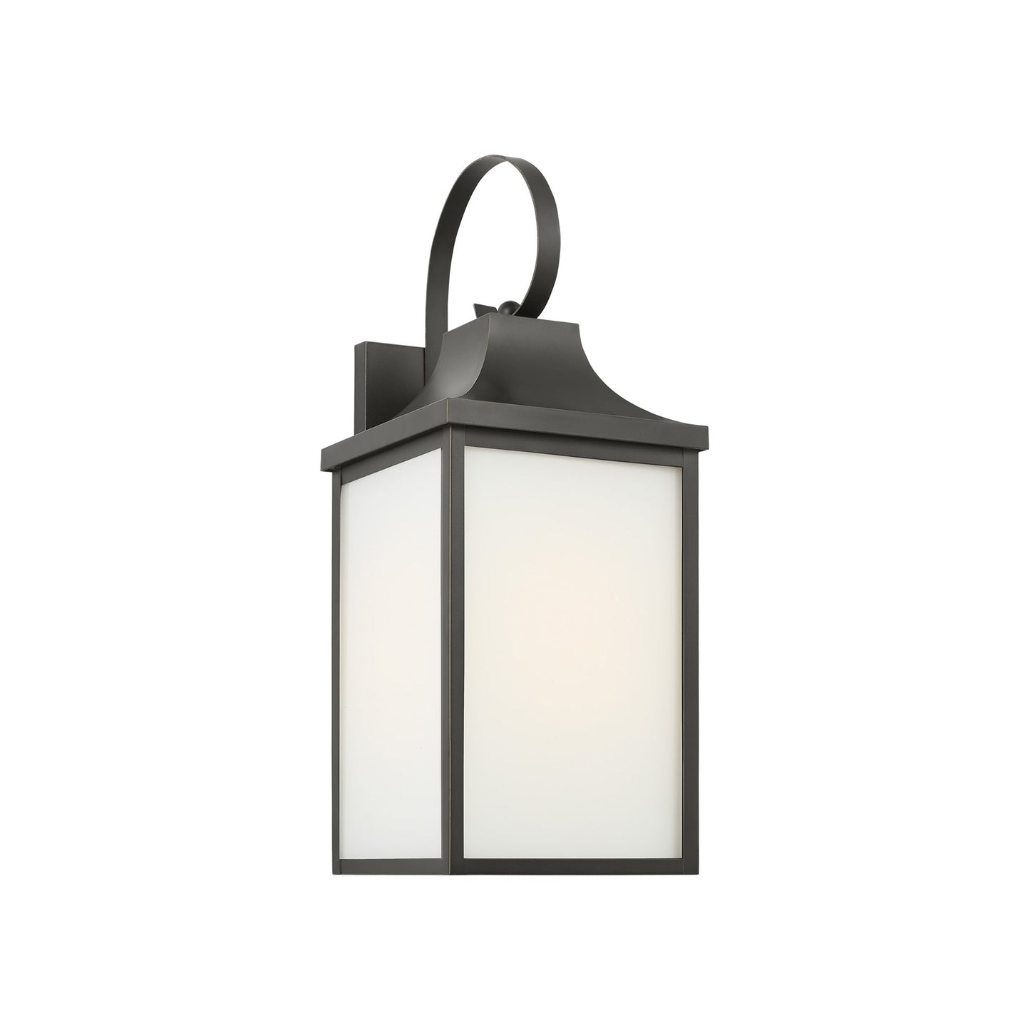 The Saybrook Outdoor Wall Light from Generation Lighting upgrades exterior spaces with a soft, charming village vibe. Its lantern-inspired motif mixes smooth metal and milky glass as it partially shields interior bulbs. Dress up a residential structure or outdoor building with this elegant light.