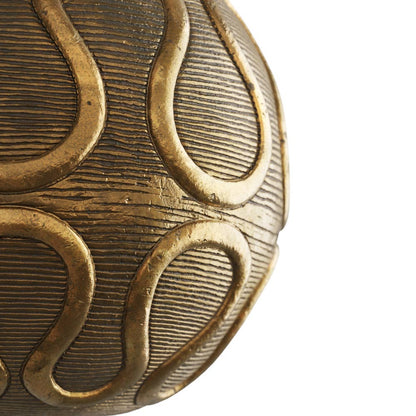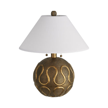 Rustic warmth brings a version of earth-inspired glam to casual or semi-formal settings. The Serpiente Table Lamp from Arteriors offers a festive look with a round base featuring cast aluminum, as ribbon-like artisan accepts offer a faceted quality and a tapered fabric shade provides a crowning touch.