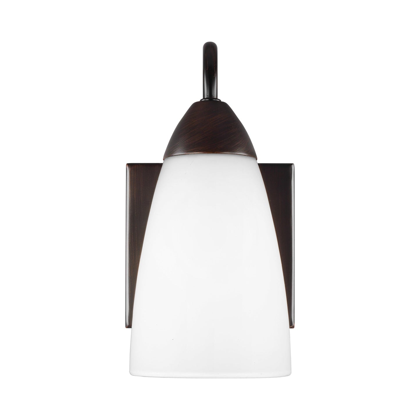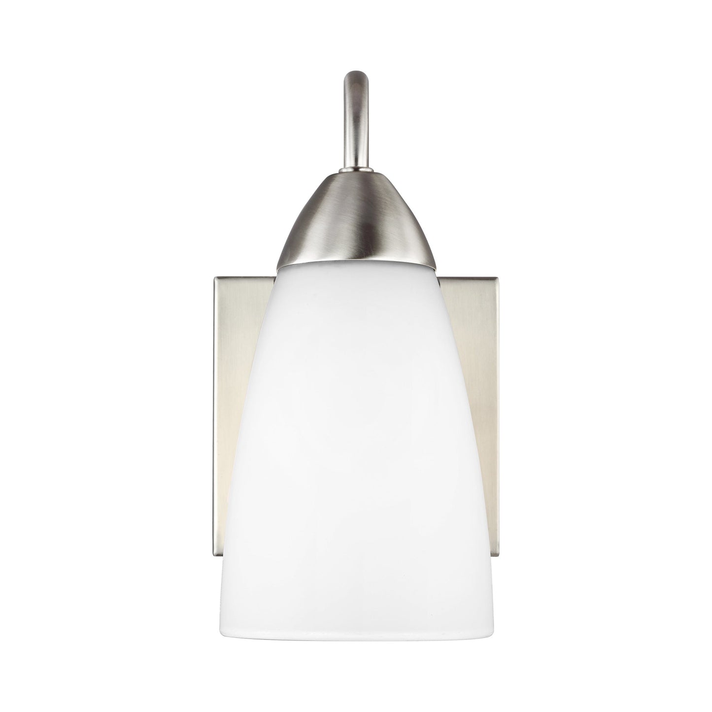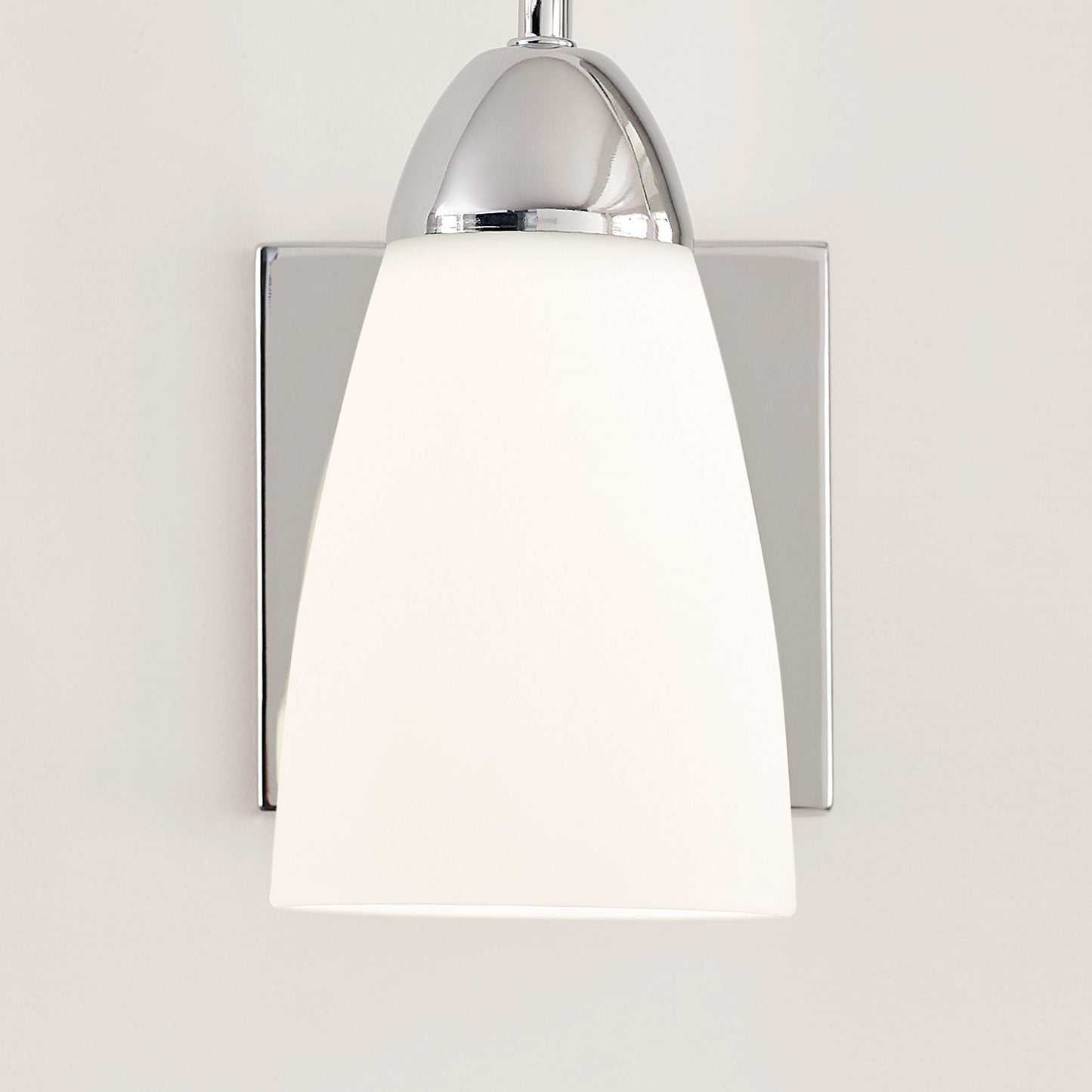 Energetic and sleek in silhouette, the Seville Bath Wall Light from Generation Lighting adds a compelling element to an en suite or guest bathroom. Contrasting finishes are cleverly arranged, with metal framing and milky glass placed perfectly as positive-negative outputs. Delightfully arched arms offer a nautical twist to this stylish fixture.