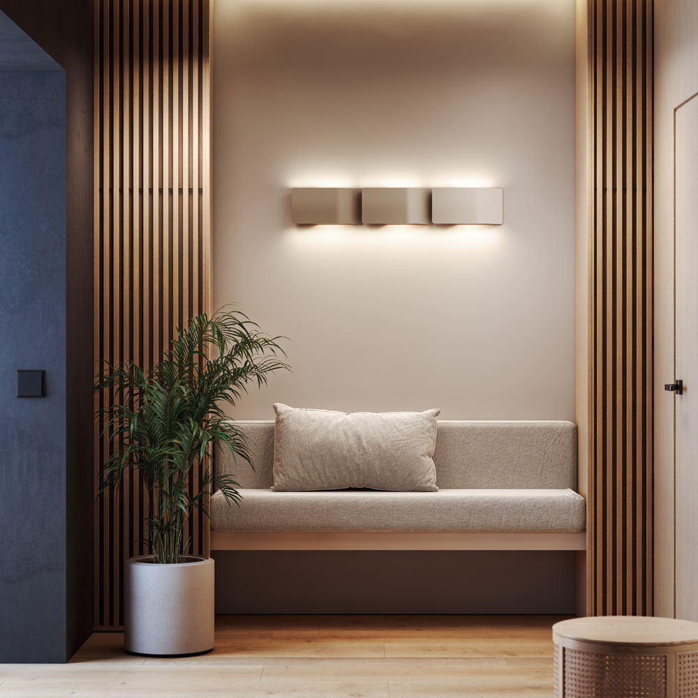 Like a quiet whisper in the dark, the Shapes Wall Light from Estiluz gracefully casts a soft, inviting glow that seems to breathe life into any room. Two delicately folded metal screens cradle the light, their edges gently diffusing the amber-hued radiance into pools of warmth. This sculptural sconce balances art and illumination, transforming your space into a serene sanctuary filled with elegance and a touch of romance.