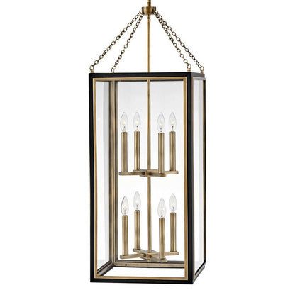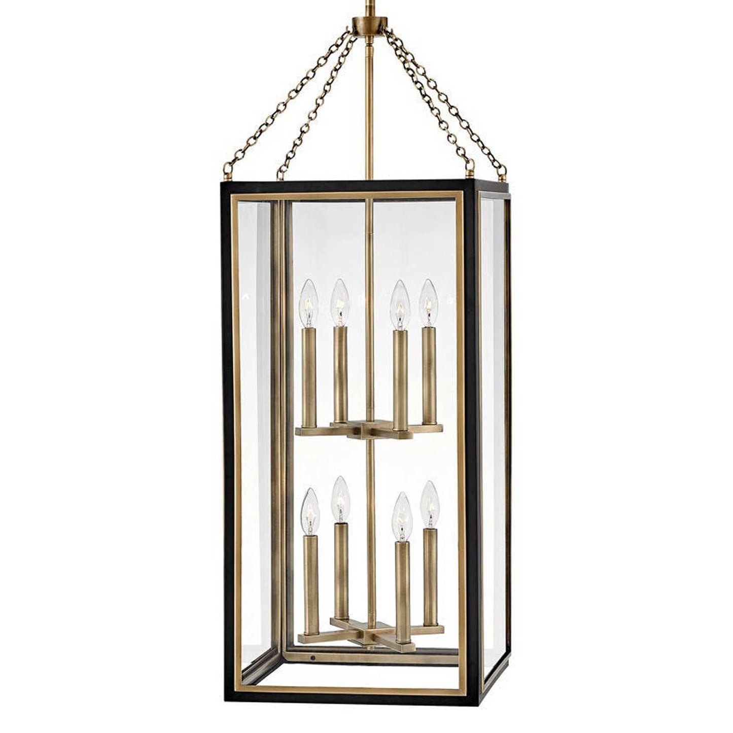 Traditional in style, and unique in character, Shaw is distinguished by its dramatic frame and enchanting design elements. Robust clear glass panels, the rich two-tone finish combination, and a captivating fine chain detail unite to deliver dashing heritage charm.