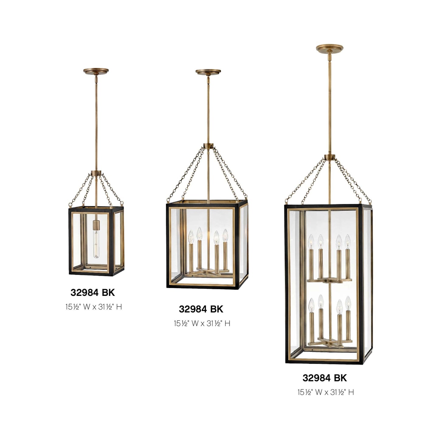 - 4-Light: 15.5"W X 31.5"H; 63.5" max height