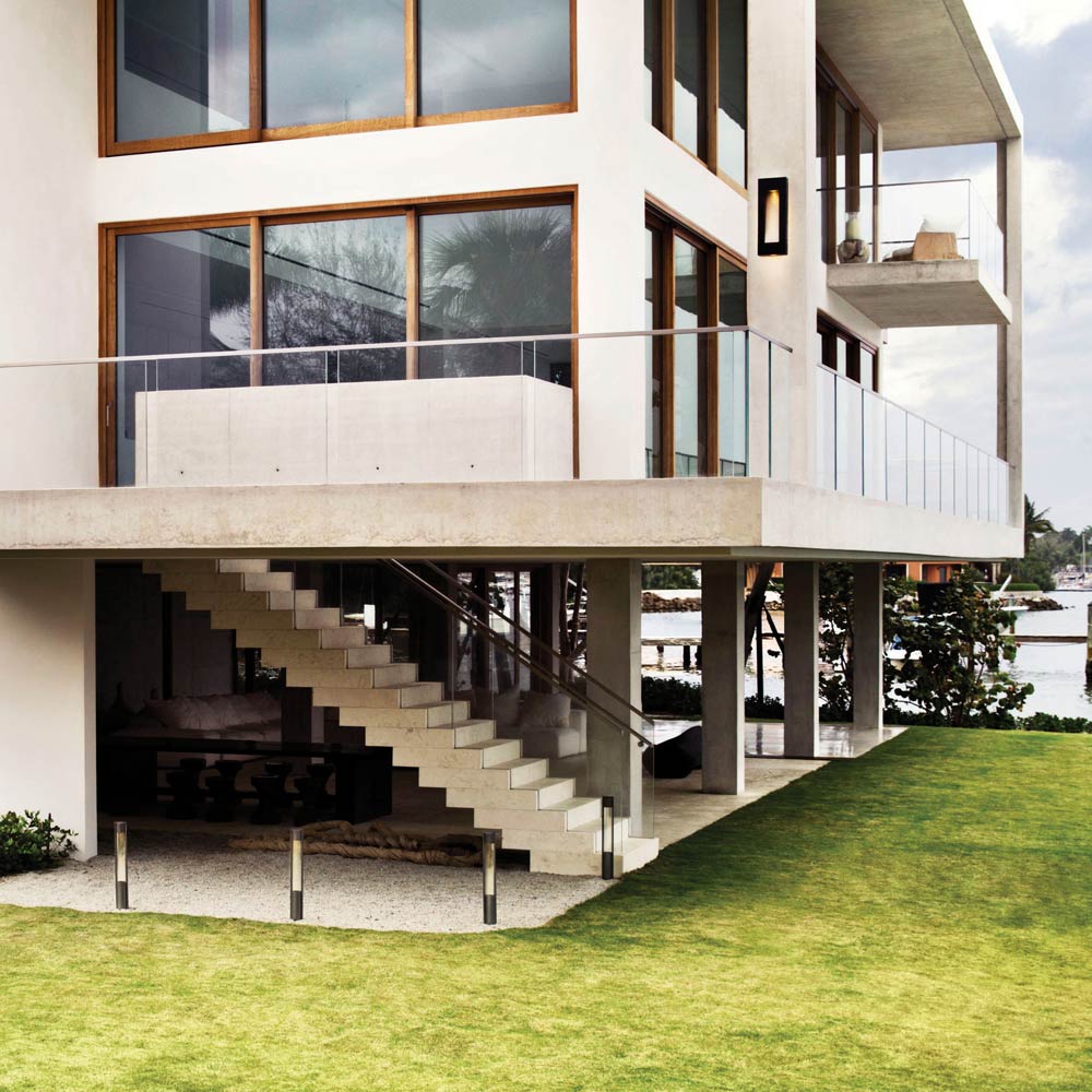 Seedy glass lends a sense of effervescence to the modern Shelter Bollard from Hinkley. A clean, tall cylinder silhouette reinforces a sleek, modern design aesthetic while adding a hint of character and providing lovely illumination to a path or garden.