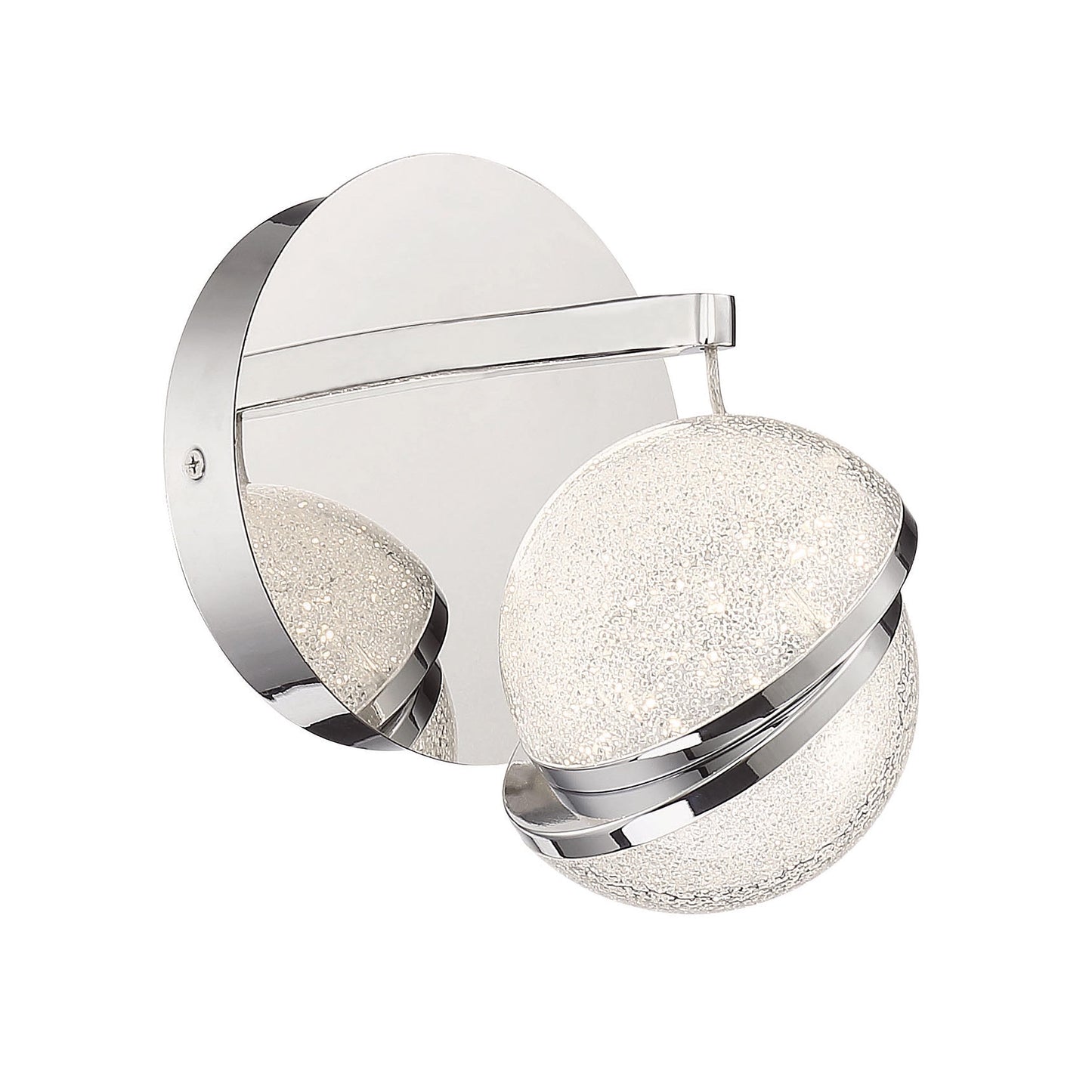 The glittering crystal sand shades of the Silver Slice LED Bath Wall Light from George Kovacs are accentuated with a mirror-like chrome finish that magnifies the designer effect.