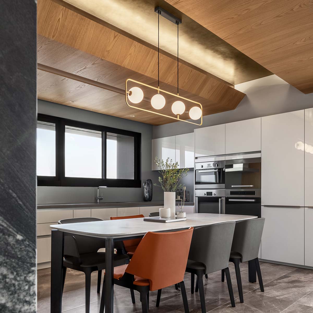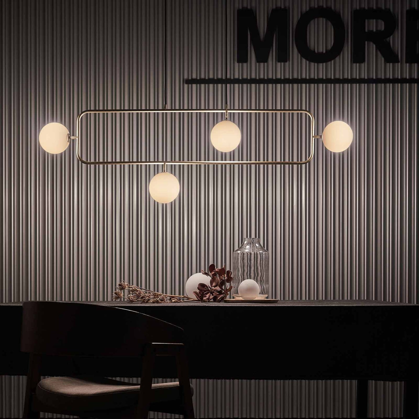 Modern design form adopts a retro motif with a compelling configuration as the Sircle Linear Pendant Light from Seed Design becomes a focal point in a modern or transitional space. Embrace an open rectangular metal frame encasing opal glass globe shades infusing energy-efficient illumination.