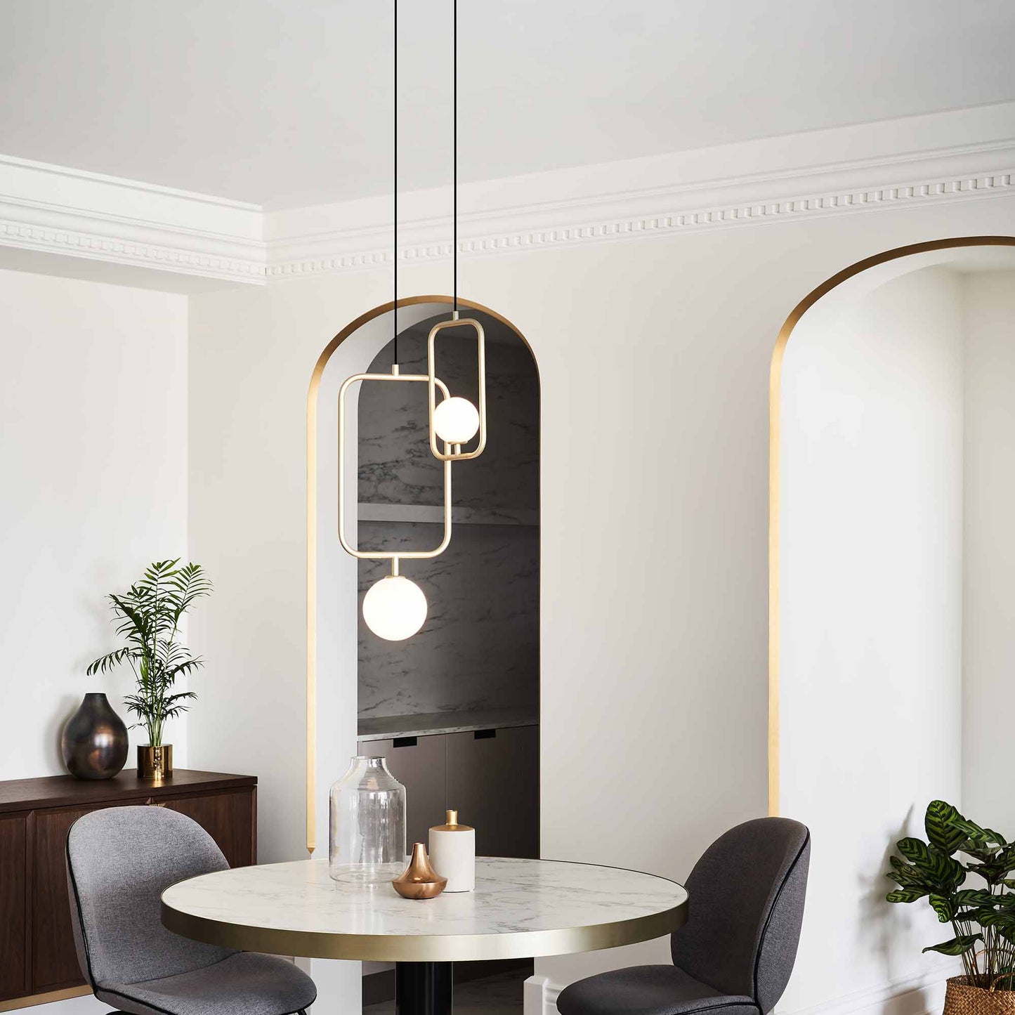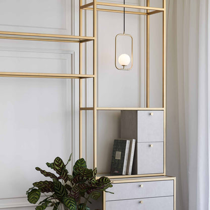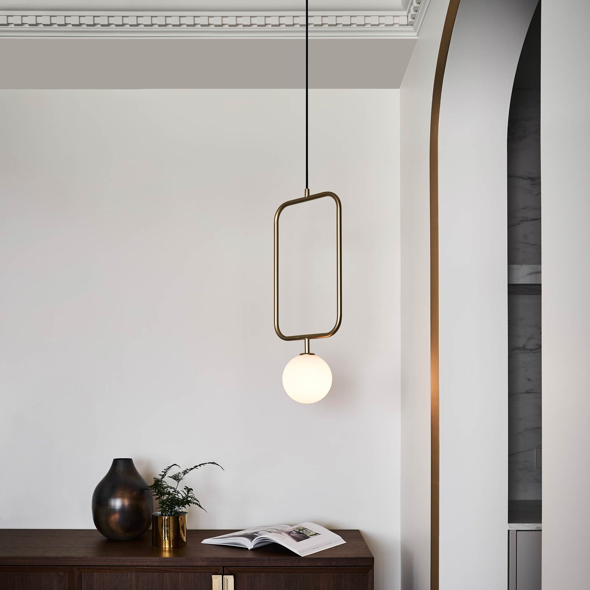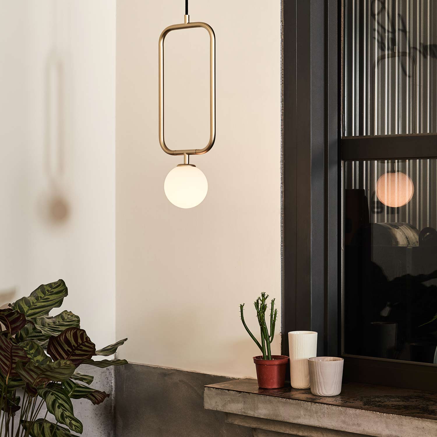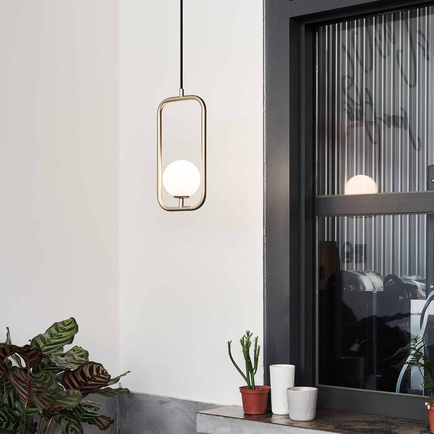 Capturing an intriguing open-concept silhouette, the Sircle Pendant Light from Seed Design delivers a bit of Art Deco style with retro vibes. Energy-efficient illumination glows through an opal glass globe shade surrounded by a rounded rectangular frame, adding a hint of geometry with softening charm.