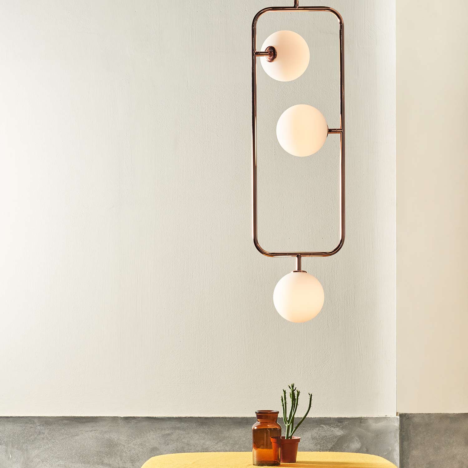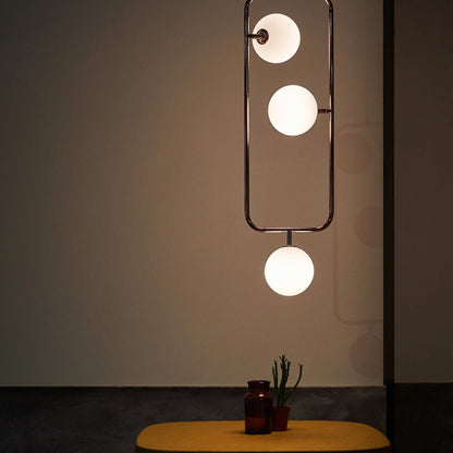 Simple silhouetting makes the most of an Art Deco vibe as the Sircle Vertical Pendant Light from Seed Design glows with energy-efficient ambient lighting and adds to a themed modern or transitional space. An intriguing arrangement of opal blown glass globe shades fit neatly within its open frame, creating artistry and old-fashioned charm in one fixture.