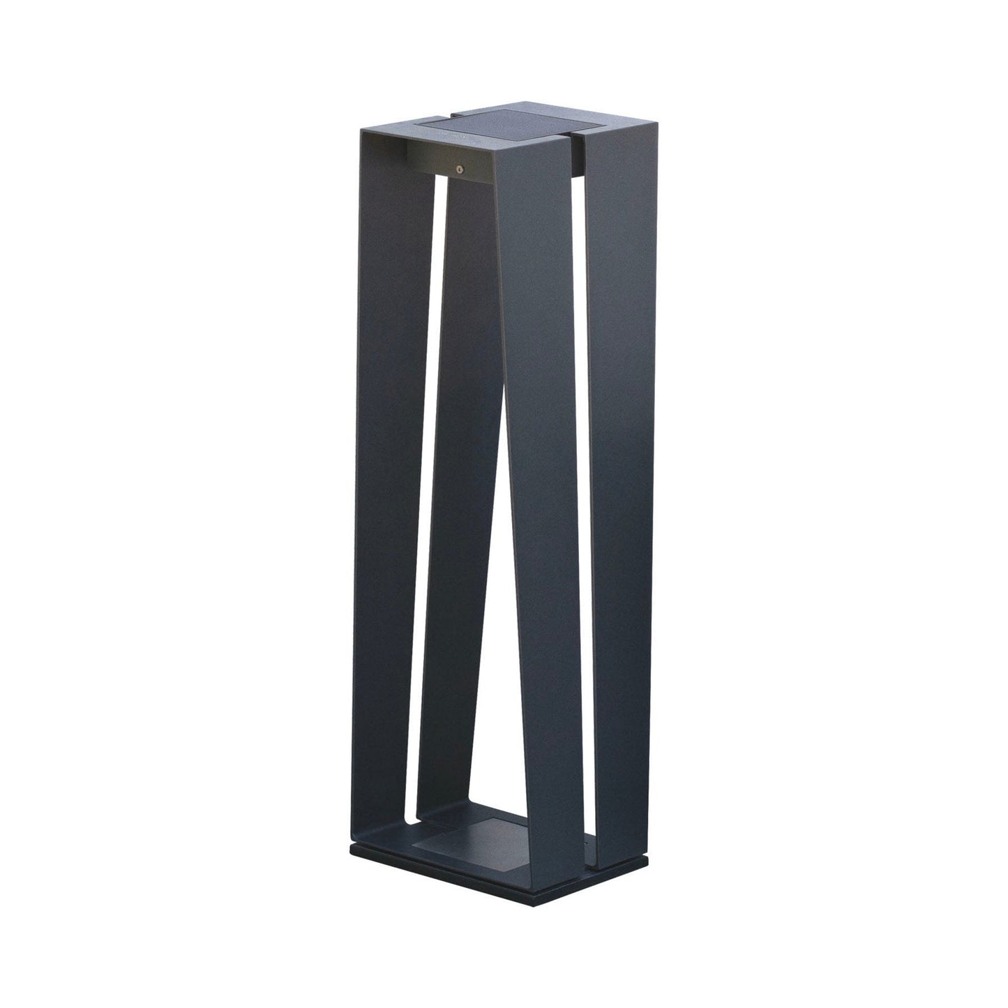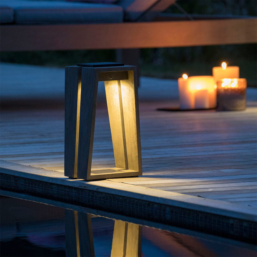 Structure and sculpturing leans architectural with a striking look as the Skaal Outdoor Solar LED Lantern from Les Jardins ratchets up the design creds of exterior lighting. Emulating Euro-style artistry with a boxy frame and angled interior shaping, this energy-efficient lantern illuminates outdoor decks, pool spaces, gardens, and walkways, sending soft, warm glow and a romantic mood-changing quality.