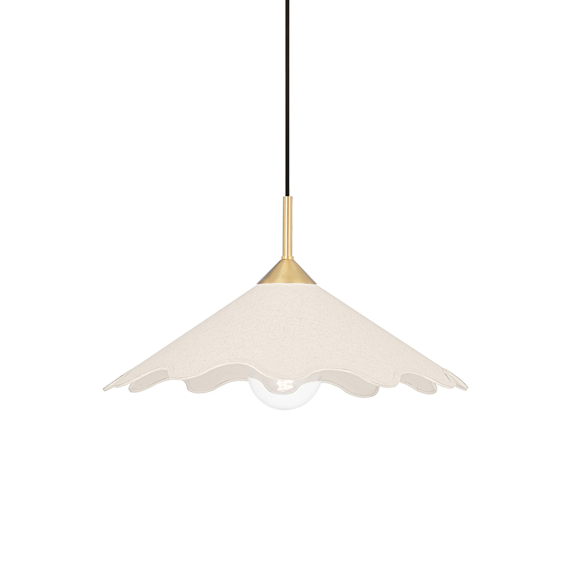 Soft and pretty, the Sodsai Pendant Light from Mitzi is a nod to traditional design updated for contemporary living spaces. A wide shade shows off scalloped edging and natural linen to create warm, welcoming illumination to fill any living space. An aged brass accent finish completes this sophisticated look.