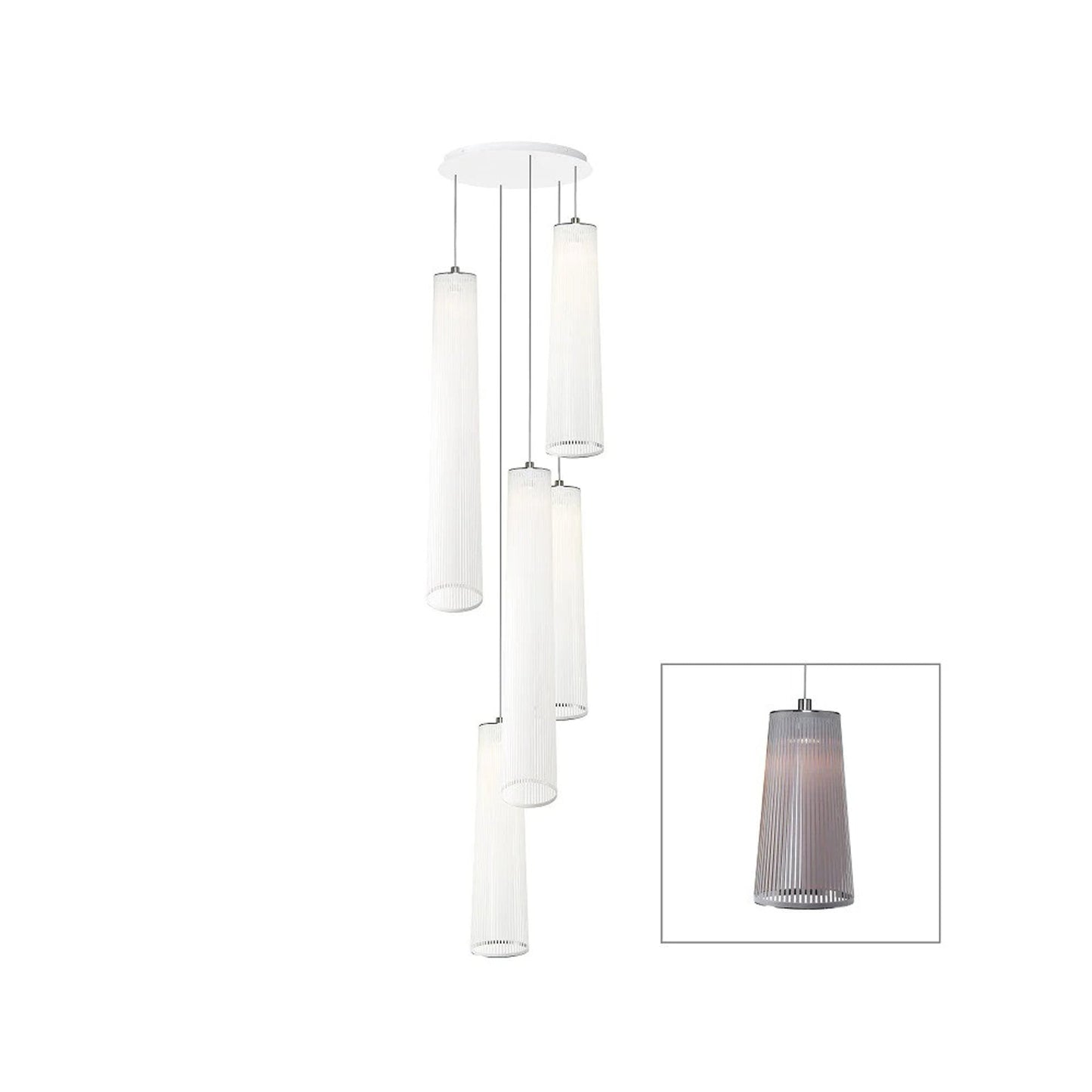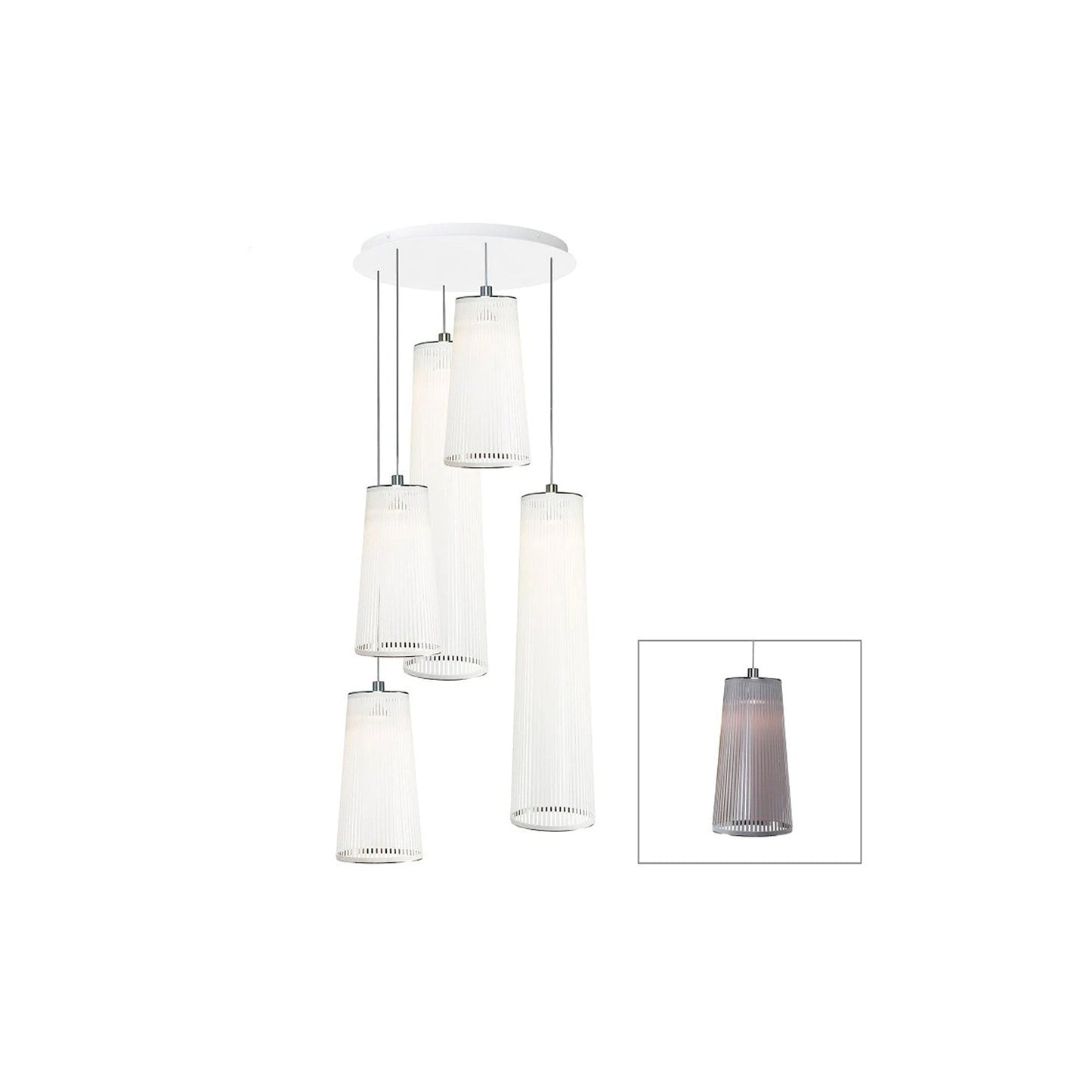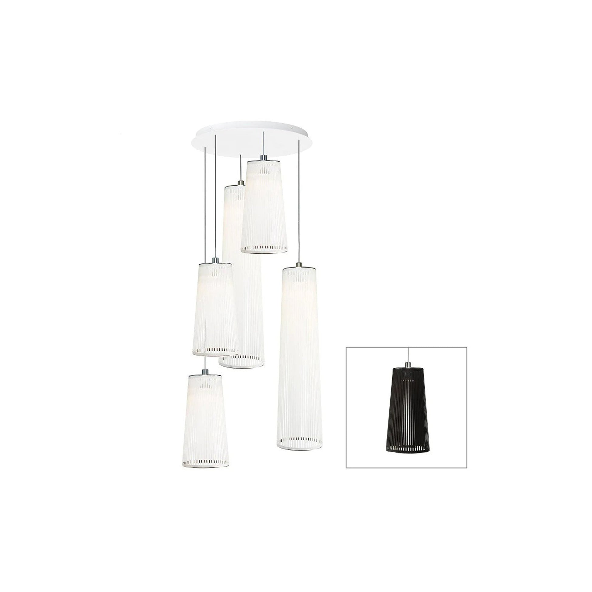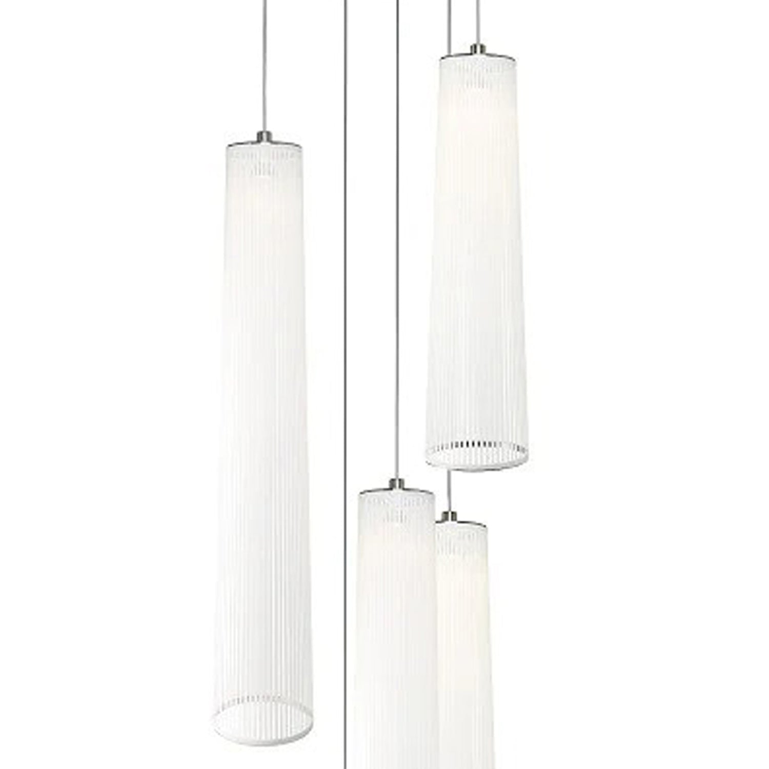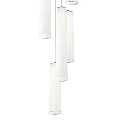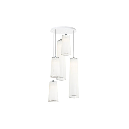 An embellished sense of conventional style yields simple yet upscale elegance in a light fixture with Solis Chandelier from Pablo. Relish the decadence and delicacy of dangling white glass luminaires in a graduated arrangement, adding a visual enticement that captures attention in a contemporary setting.