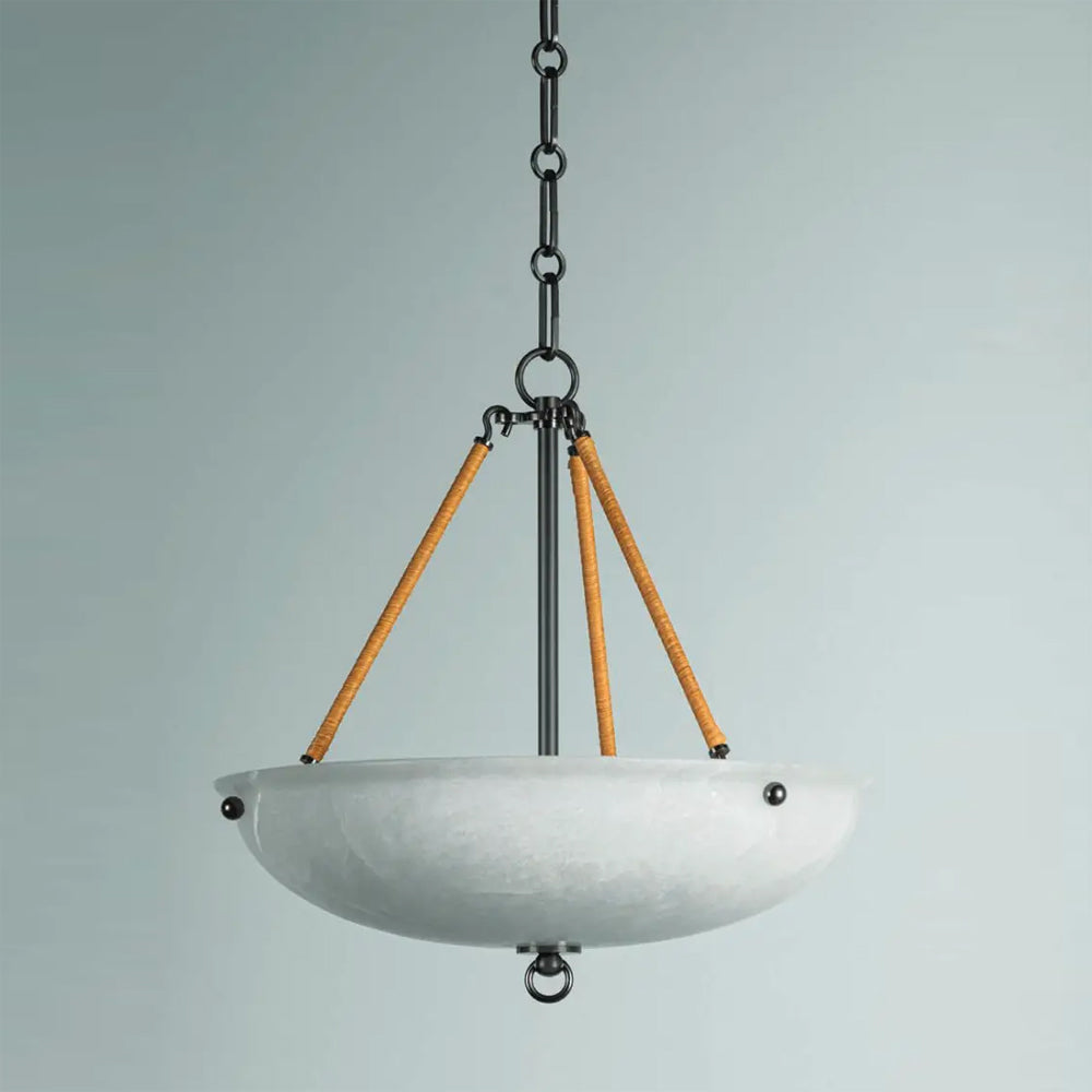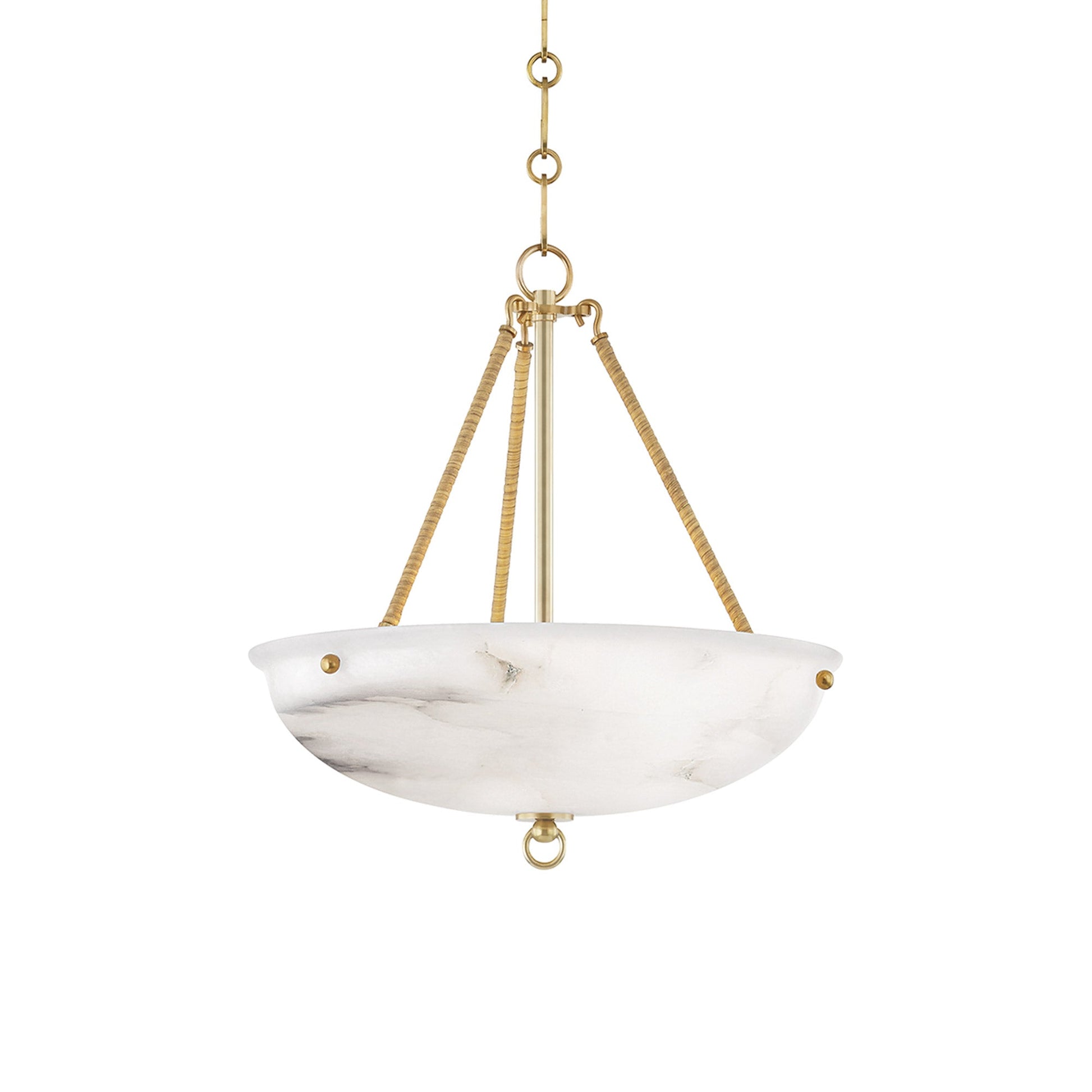 A dose of rustic glam spells out elegance with a natural vibe, perfect for contributing to the artisanal motif of a special space. With a chic alabaster inverted dome shade, the Somerset Pendant Light from Hudson Valley Lighting ignites an exceptional design standard. Detailed metalwork and bold cable suspension embellish this beauty, creating a remarkable addition to any setting.