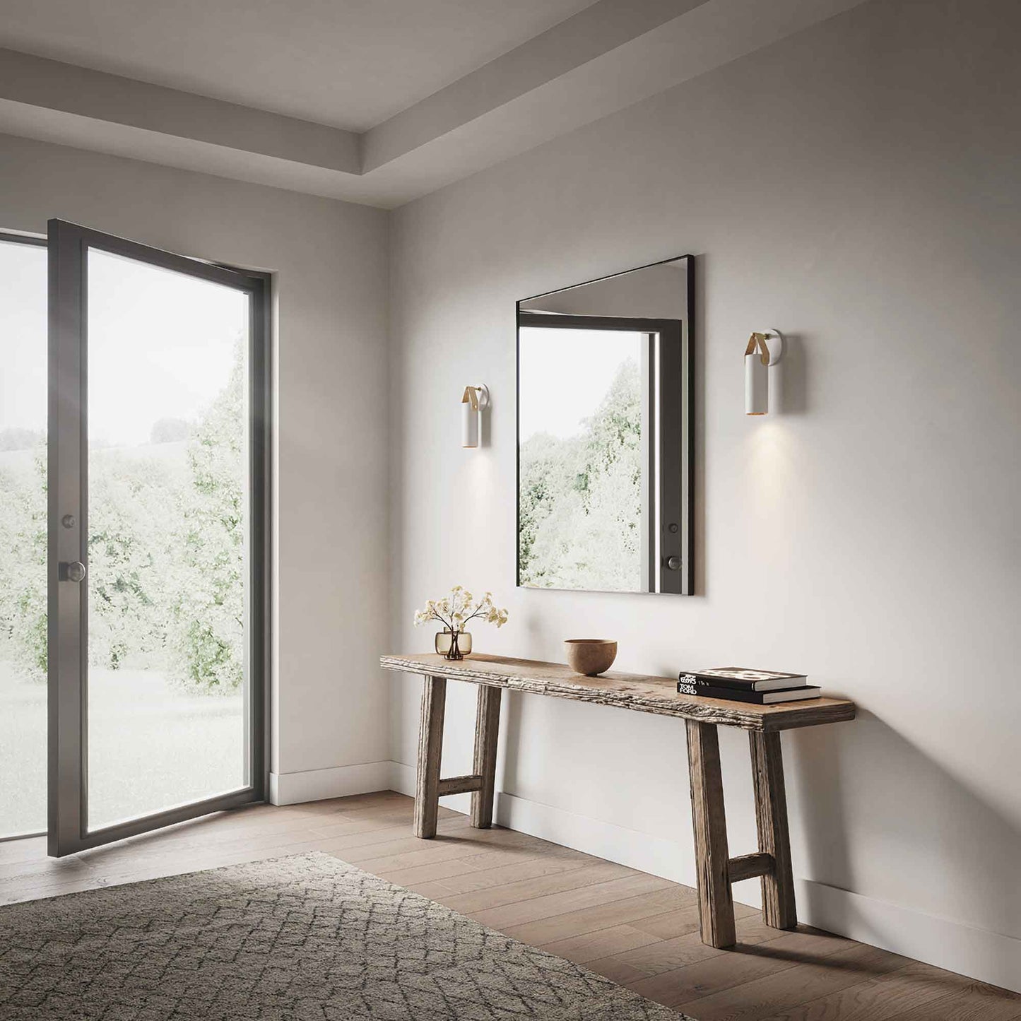 Modern vibes kick up the energy level of a casual space, adding a fresh, stylish look with chic minimalism. With a charming leather strap hosting a cylindrical metal shade, the Spero Wall Light from Cerno transforms a contemporary living space into a taster of farmhouse tradition.