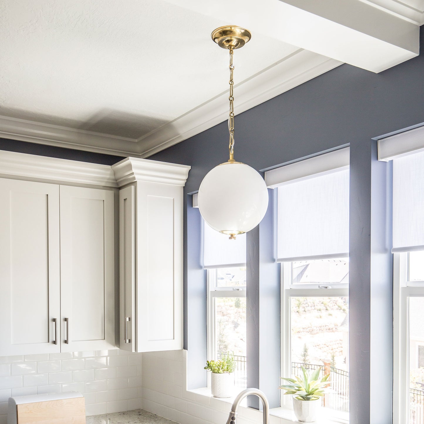 An eye-pleasing fusion of brass and glass makes the Sphere No.1 Pendant Light from Hudson Valley Lighting a stylish statement piece.