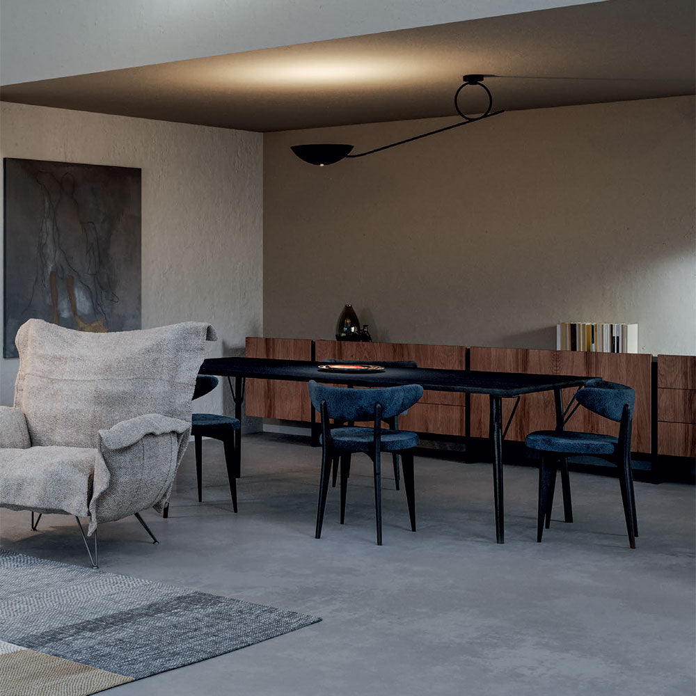 Appropriately designed with a sleek, bold black finish, the Spring Semi Flush Mount Ceiling Light from Diesel with Lodes changes the dynamics of a modern space. Create a bit of industrial personality with this fixture reflecting whimsical style in a metal half-moon disc shade attached to a wall mount with a festive ring loop. Studio settings and office spaces are as conducive to this sleek semi-flushmount light as are everyday living spaces.