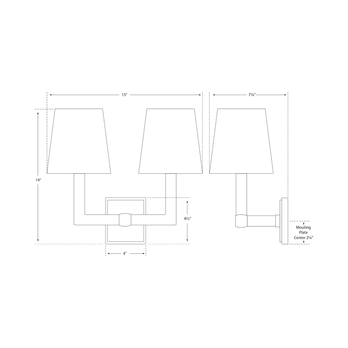 - 15-Inch: 15"W X 14"H; 7.25" Extension