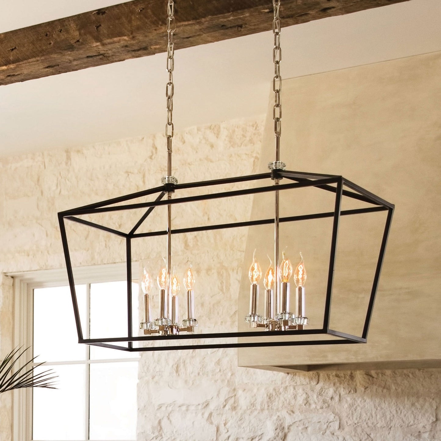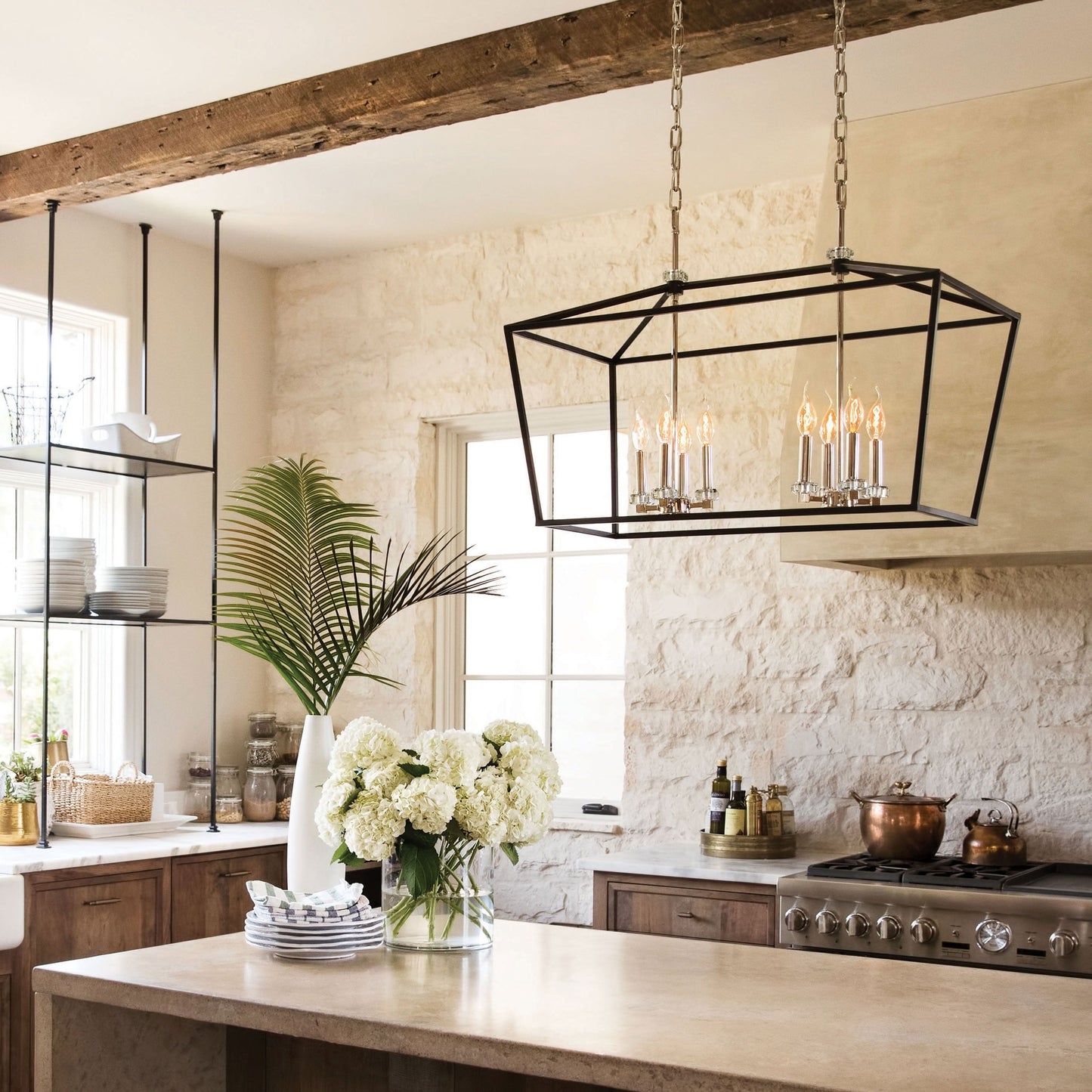For a classic statement-maker, Stinson Linear Pendant Light hits the mark. A robust open and airy cage, designed for maximum impact in a Distressed Brass or Black and Polished Nickel finish, is accompanied by refined sparkling crystal accents to create the perfect mix of traditional appeal and industrial panache.