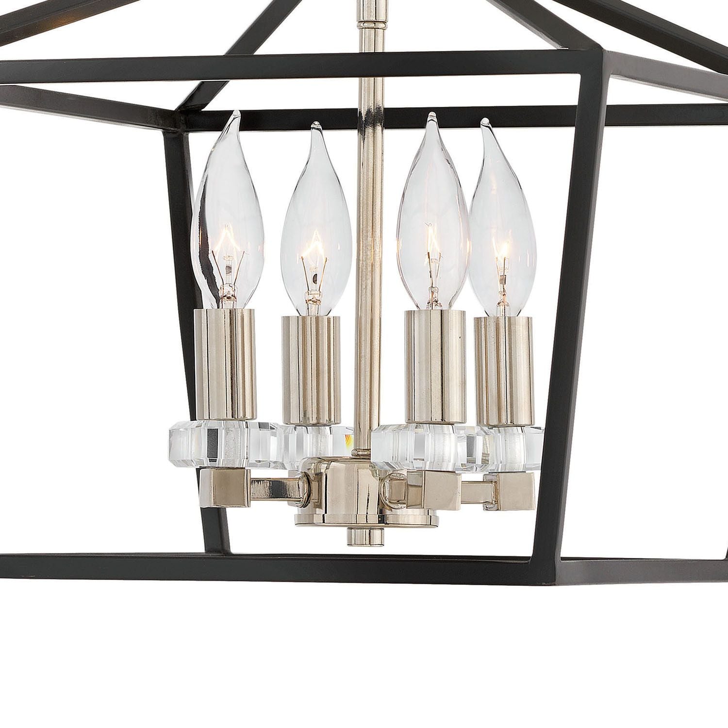 For a classic statement-maker, Stinson Semi-Flush Mount Ceiling Light hits the mark. A robust open and airy cage, designed for maximum impact in Black finish, is accompanied by refined sparkling crystal accents to create the perfect mix of traditional appeal and industrial panache.