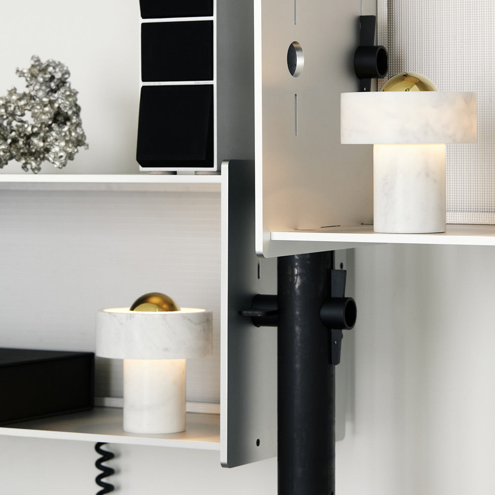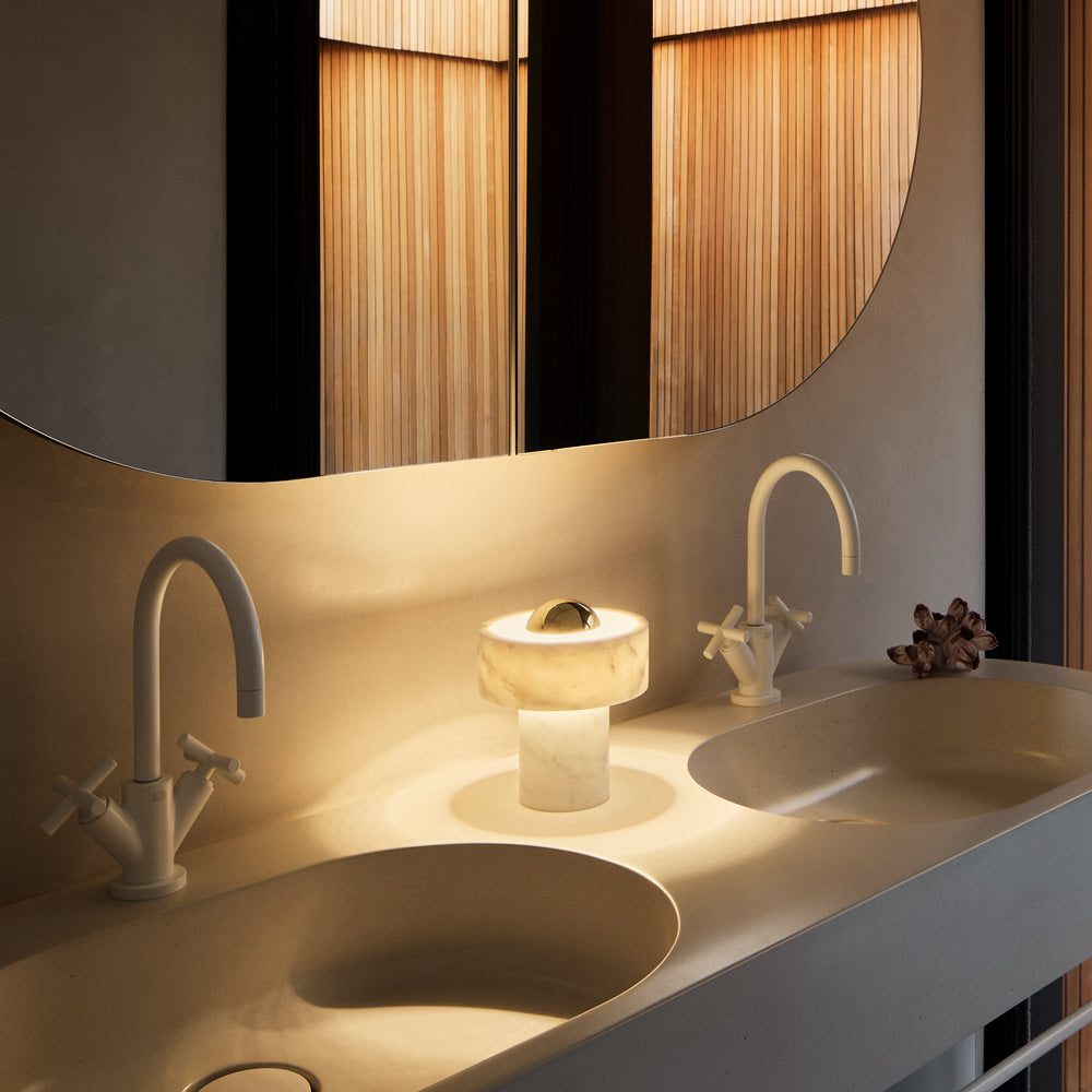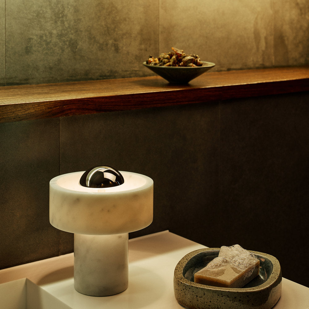 Begin with an alluring organic vibe and end with the contemporary look of basic shaping. Resulting is the Stone LED Portable Table Lamp from Tom Dixon, a superb choice for a mixed motif space. Marble construction welcomes a centered metal cap delivering energy-efficient three-way lighting.