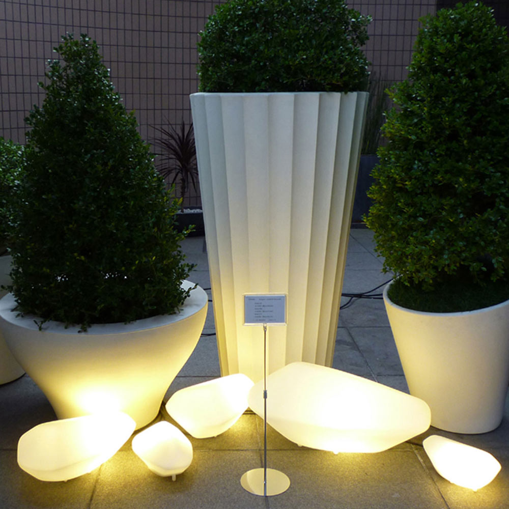 Direct descendants of the Stone of Glass collection by Laudani & Romanelli, the shapes of the Stones outdoor lamps are inspired by nature. These luminous stones, available in two different sizes, can be positioned, either alone or together, in the greenery of a garden or the intimacy of a summer terrace, to create an interplay of diffuse, captivating light.