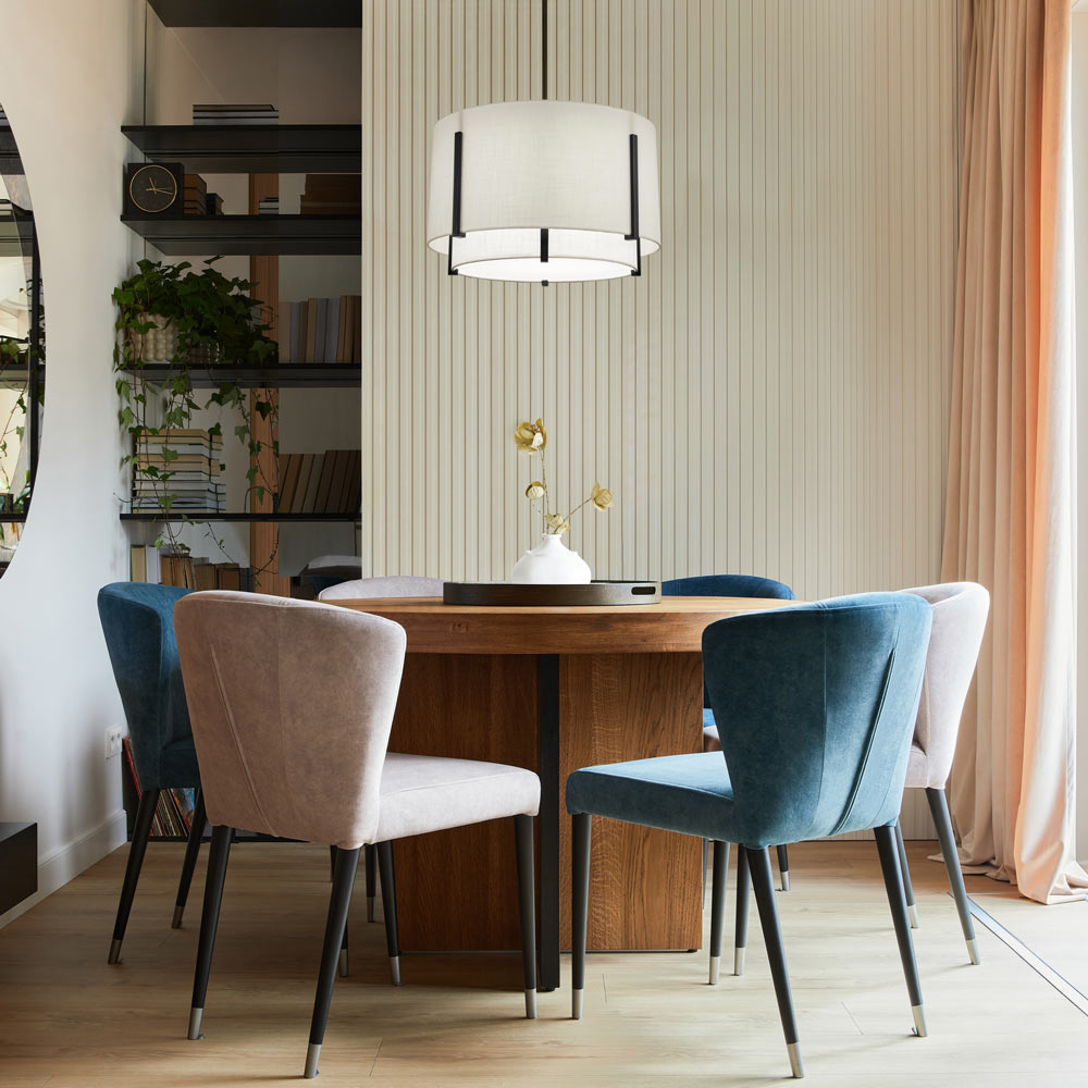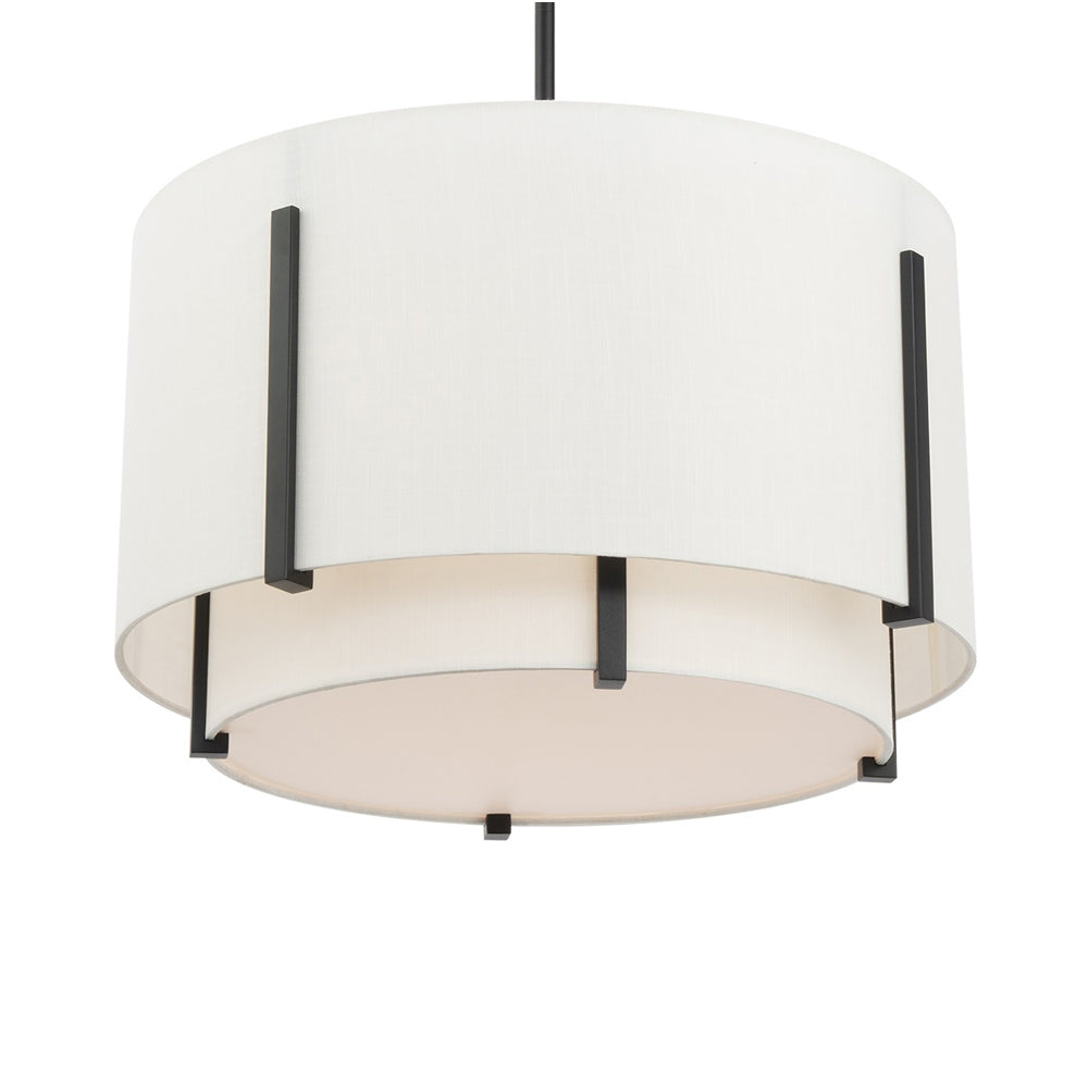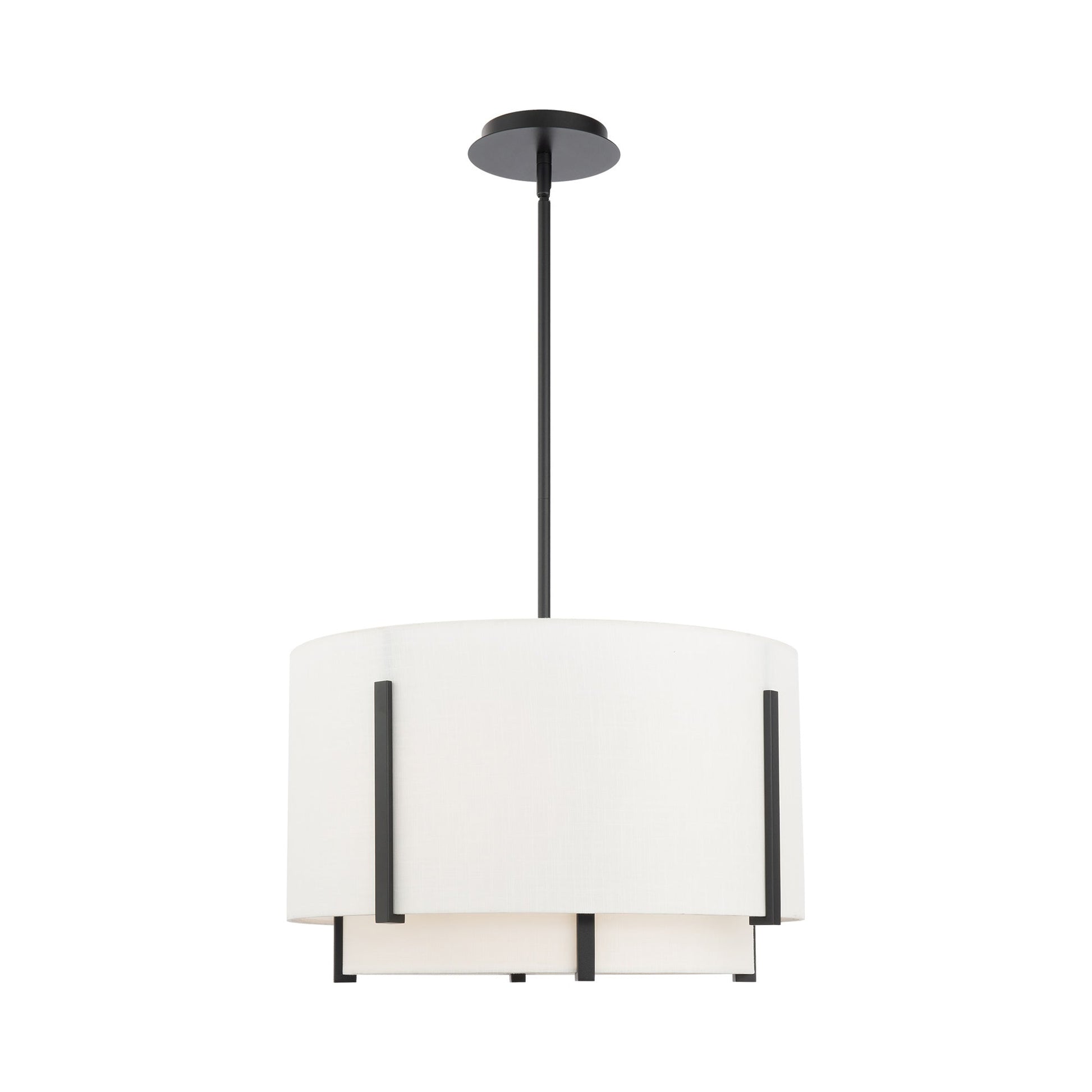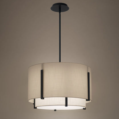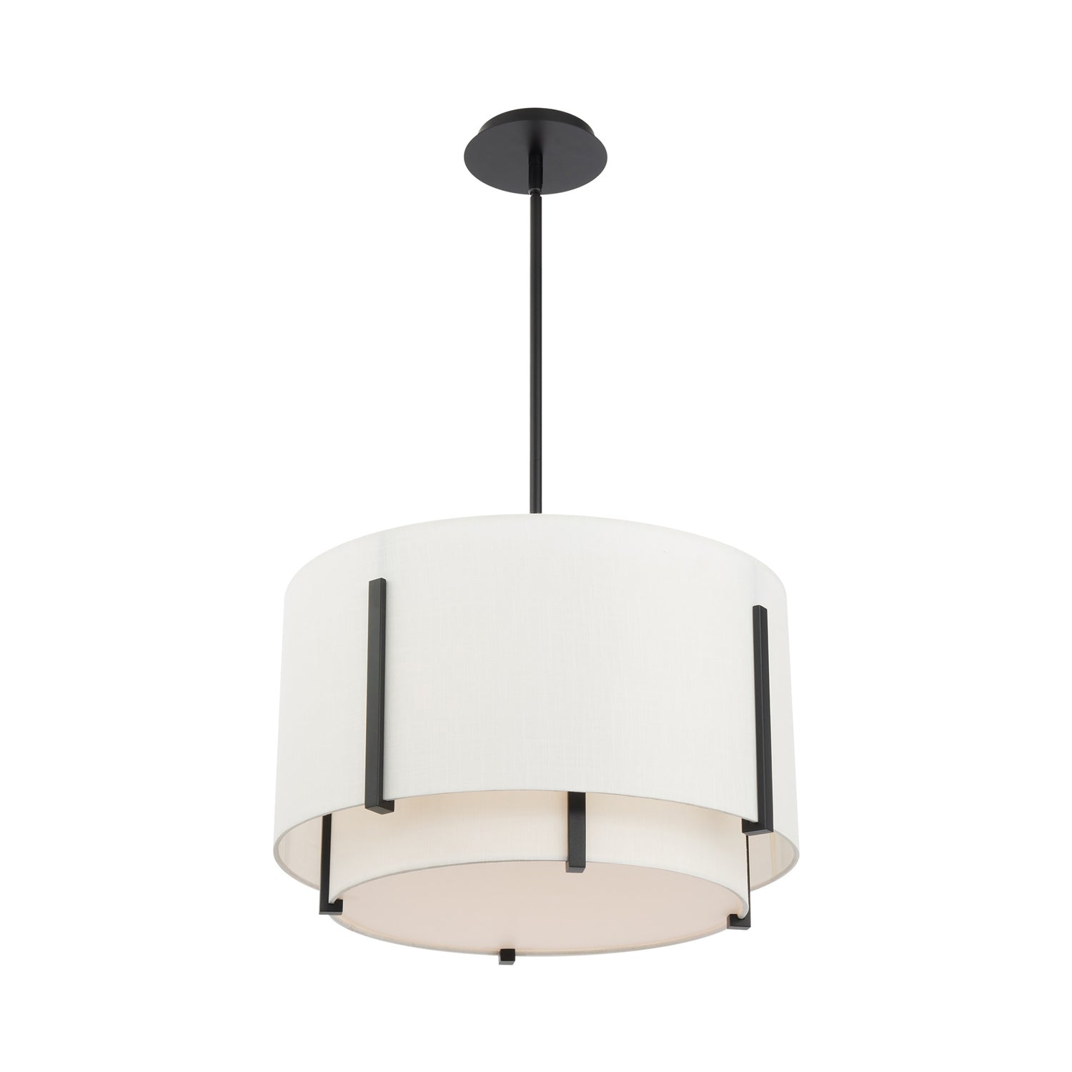 Classic minimalism follows a Mid-Century Modern path toward elegance in a light fixture with endless versatility. Featuring a dual layer of fabric shades and subtle metal framing, the Strum LED Pendant Light from dweLED delivers an iconic black and white finish palette and an endearing aesthetic ideal for highlighting dining ensembles and living spaces, as well as foyers and bedrooms. Enjoy ambient, energy-efficient illumination from a truly tasteful fixture.