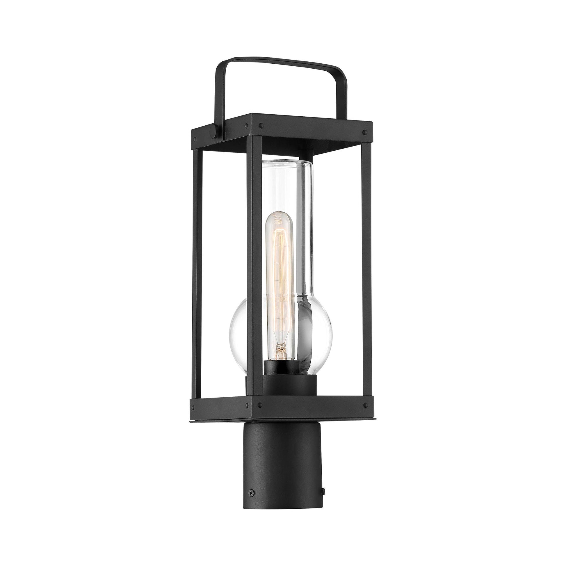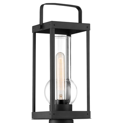 The Sullivans Landing Outdoor Post Light from The Great Outdoors creates a simplified approach to nautical styling, adding minimalism with a sophisticated twist. Embellish a custom landscaped space or pathway with this post light with a minimalist feel and construction of sand coal finish metal in an ultra-contemporary lantern motif. Clear glass sparkles in a shapely test-tube shaped shade.