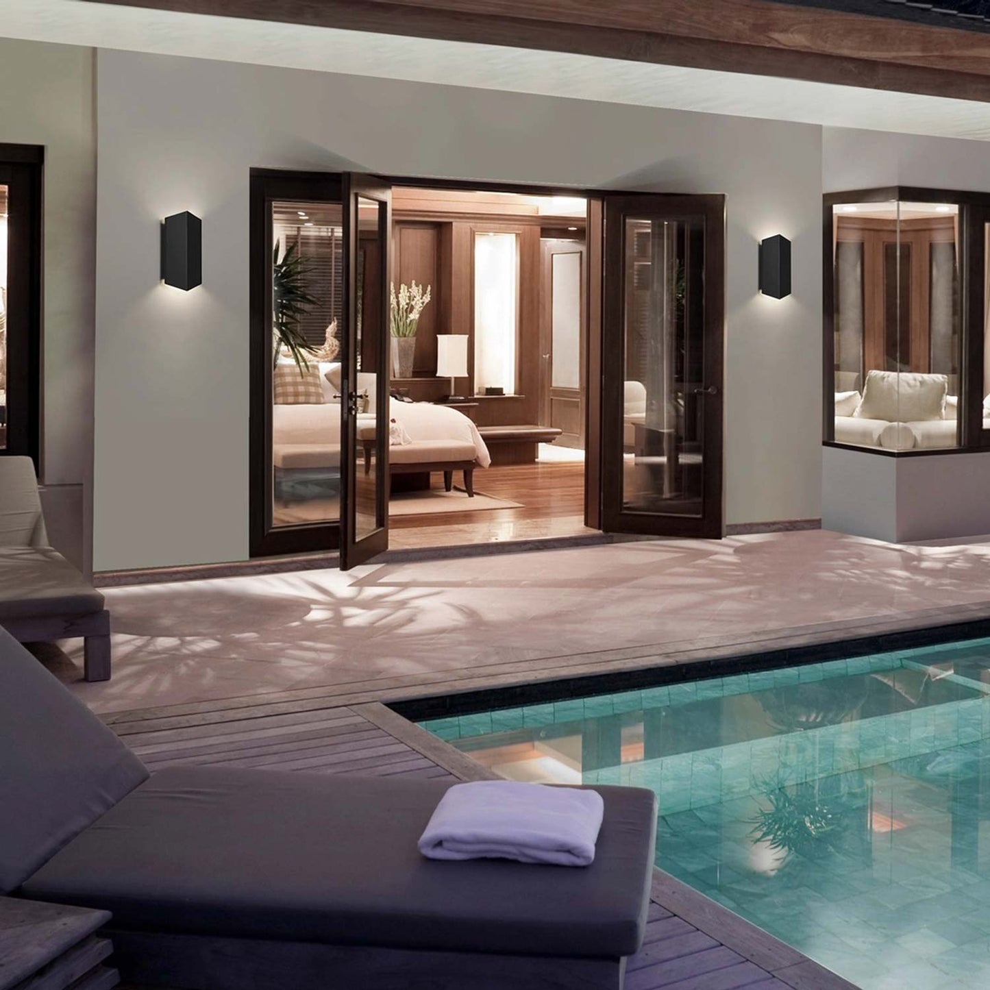 Amplify the boldness of this two-way exterior wall luminaire with equally distributed robust illumination above on facades and below on paths.