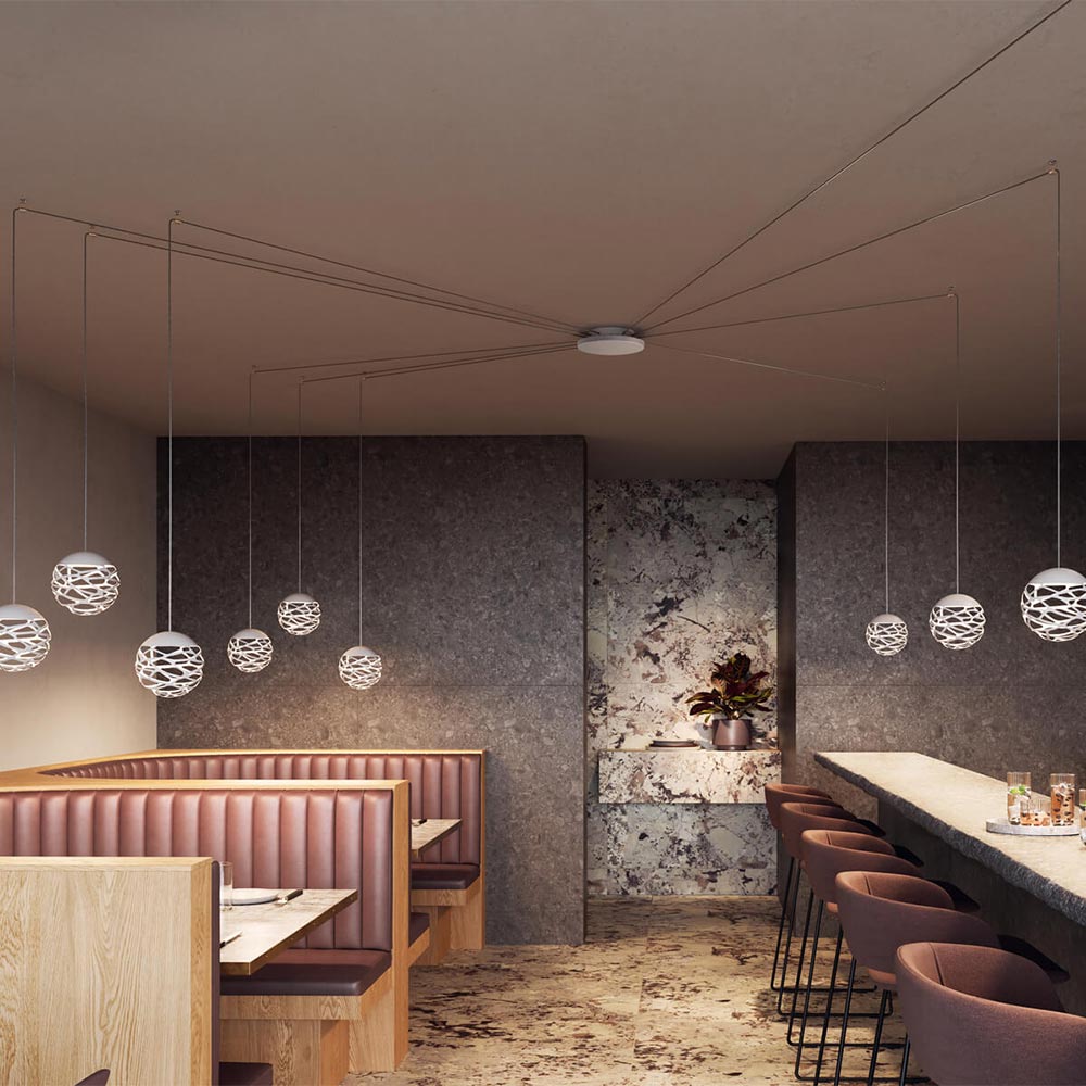 Take advantage of multiple light configurations from a single canopy with the Swag Kit For Radial Canopy from Diesel with Lodes. Its ability to accommodate unique arrangements makes it a convenient addition to lighting kits with function and fashion. Clear polycarbonate construction is low-key and unobtrusive, deferring to the style-specific aesthetic of a lighting ensemble.