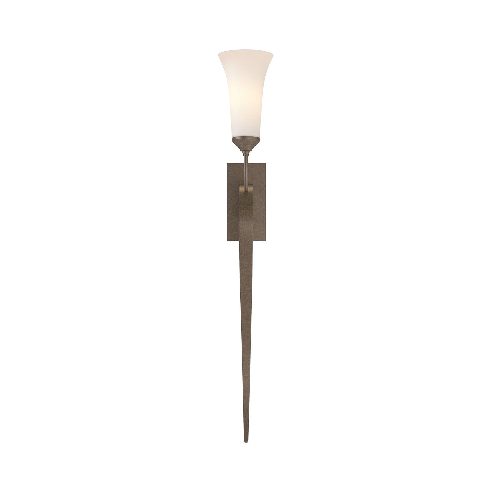 Tulip-inspired opal glass and a gracefully curved tail create a stunning combination in the Sweeping Taper Wall Light from Hubbardton Forge. Elegant and eye-catching, this fixture is an exceptional addition to your living area or entryway, offering graceful curves and the exquisite craftsmanship of skilled artisans.