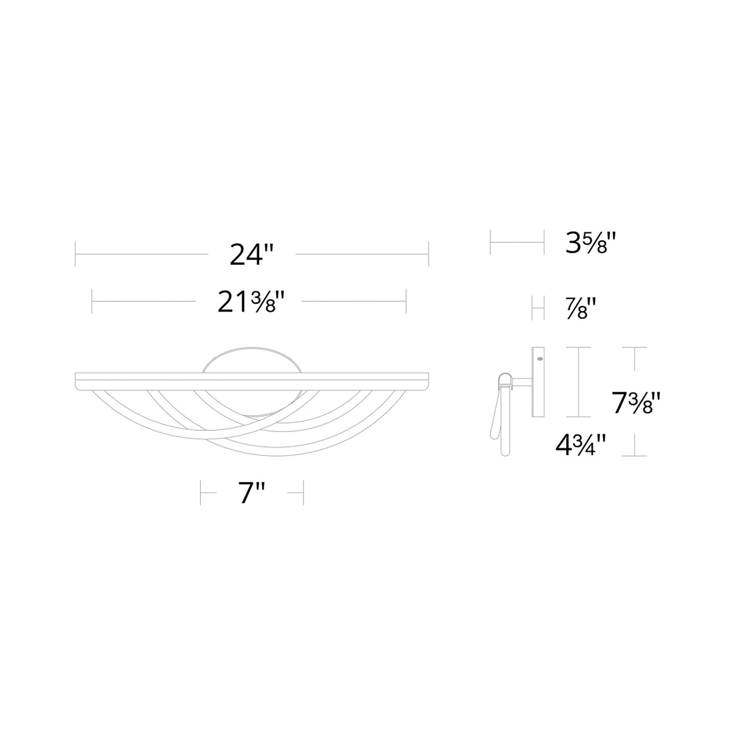 - 24-Inch: 24"W X 7.38"H; 3.63" Extension