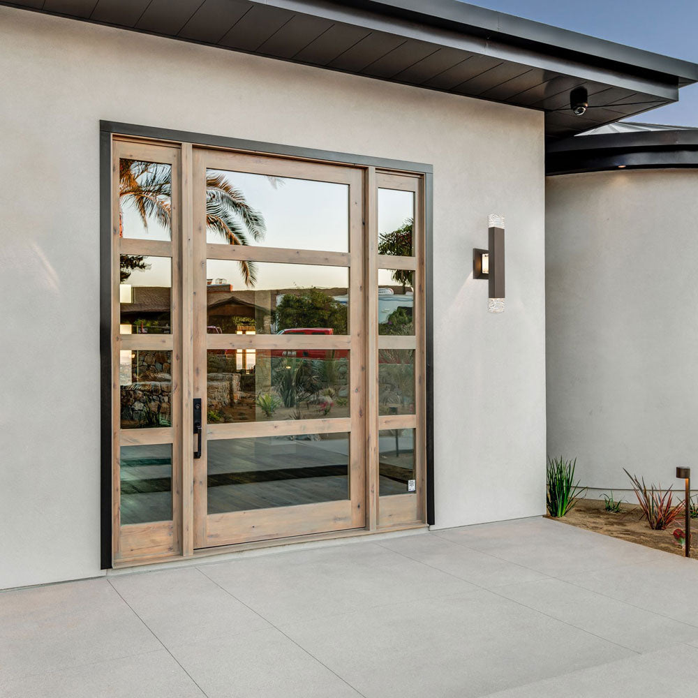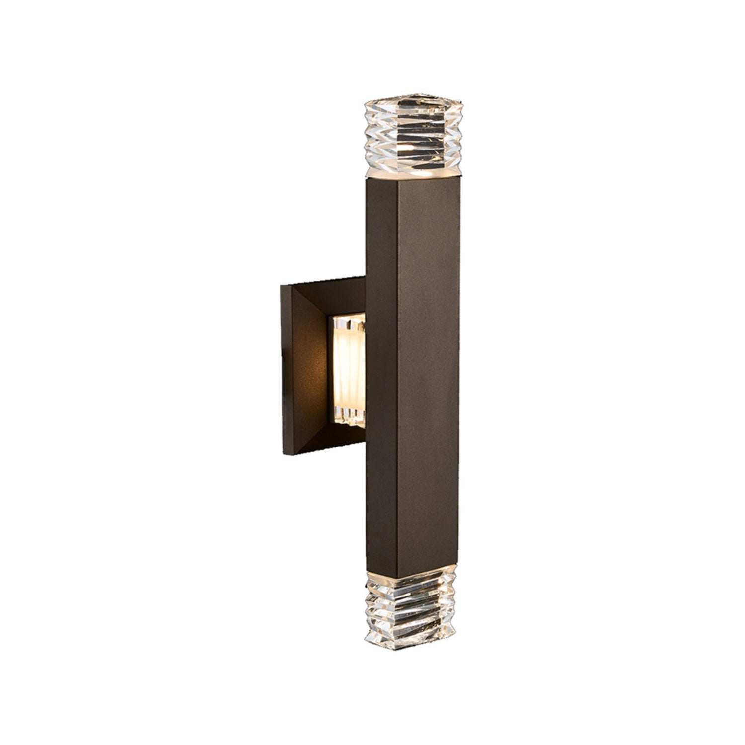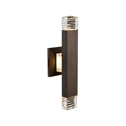 Custom cut crystal blocks add glittering sophistication to the strong silhouette of the Tapatta Outdoor LED Wall Light from Allegri. A chic addition to any porch or patio, the long, linear design utilizes the reflectivity of the crystal to minimize shadows, delivering rich, welcoming ambiance for family and visitors alike.