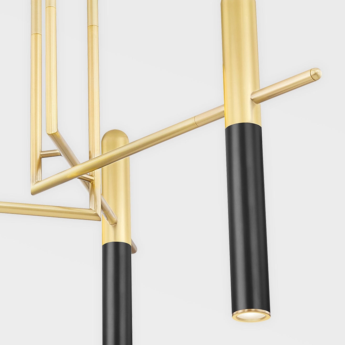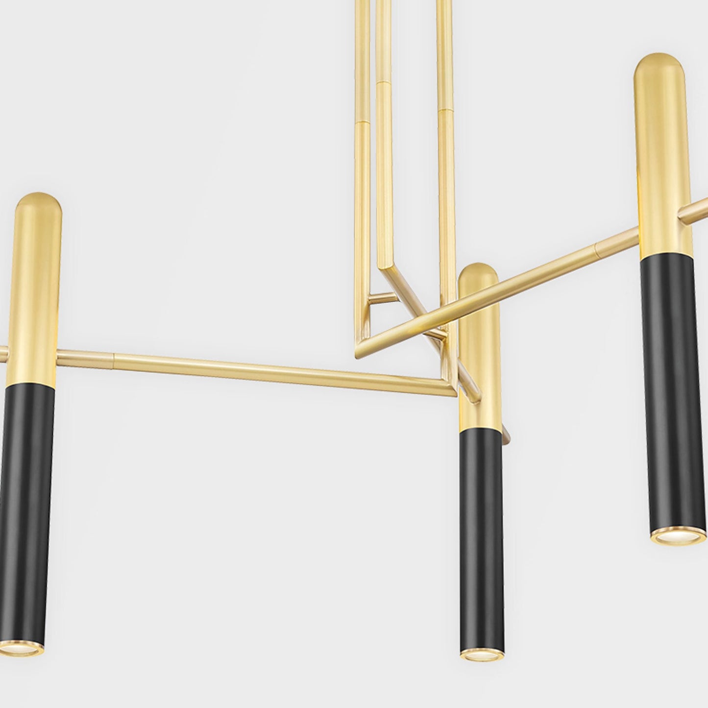 Two-tone batons of light are easy to adjust for pinpoint control of the illumination from the contemporary Thurston LED Chandelier from Hudson Valley Lighting.