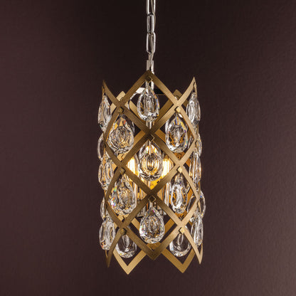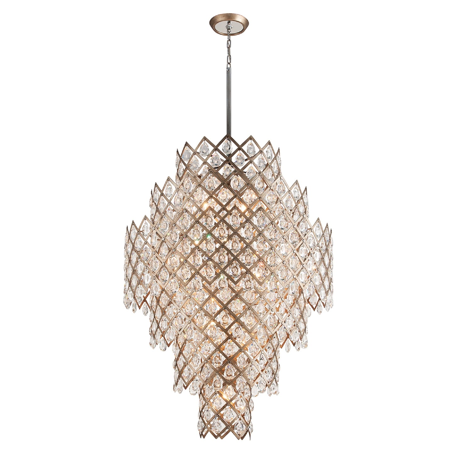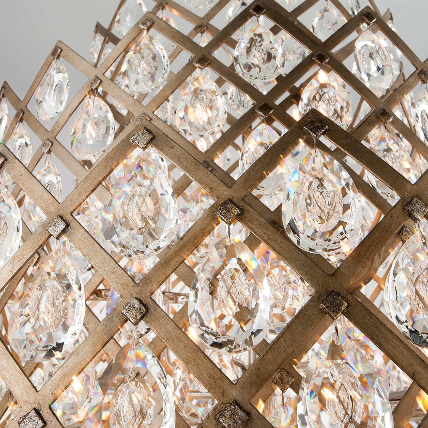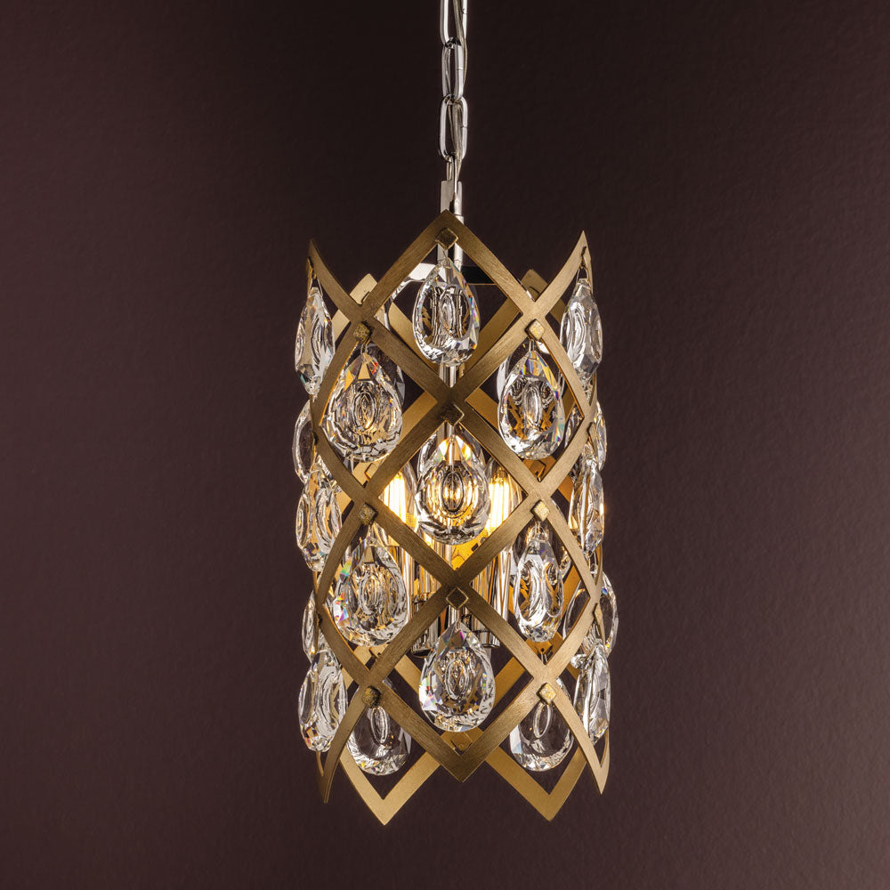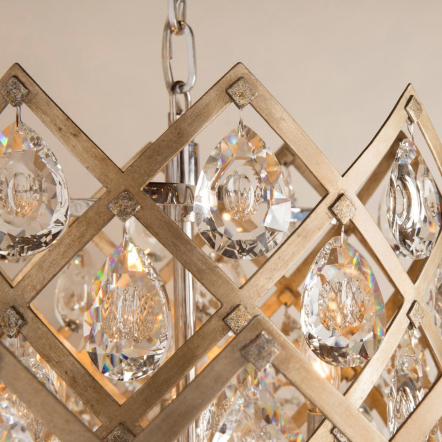 The crown jewel of lighting makes itself at home as the Tiara Pendant Light from Corbett Lighting, offering royal elegance with a lattice frame made of bronze finish metal and ornate clear crystal faceted accents serving as a diffuser.
