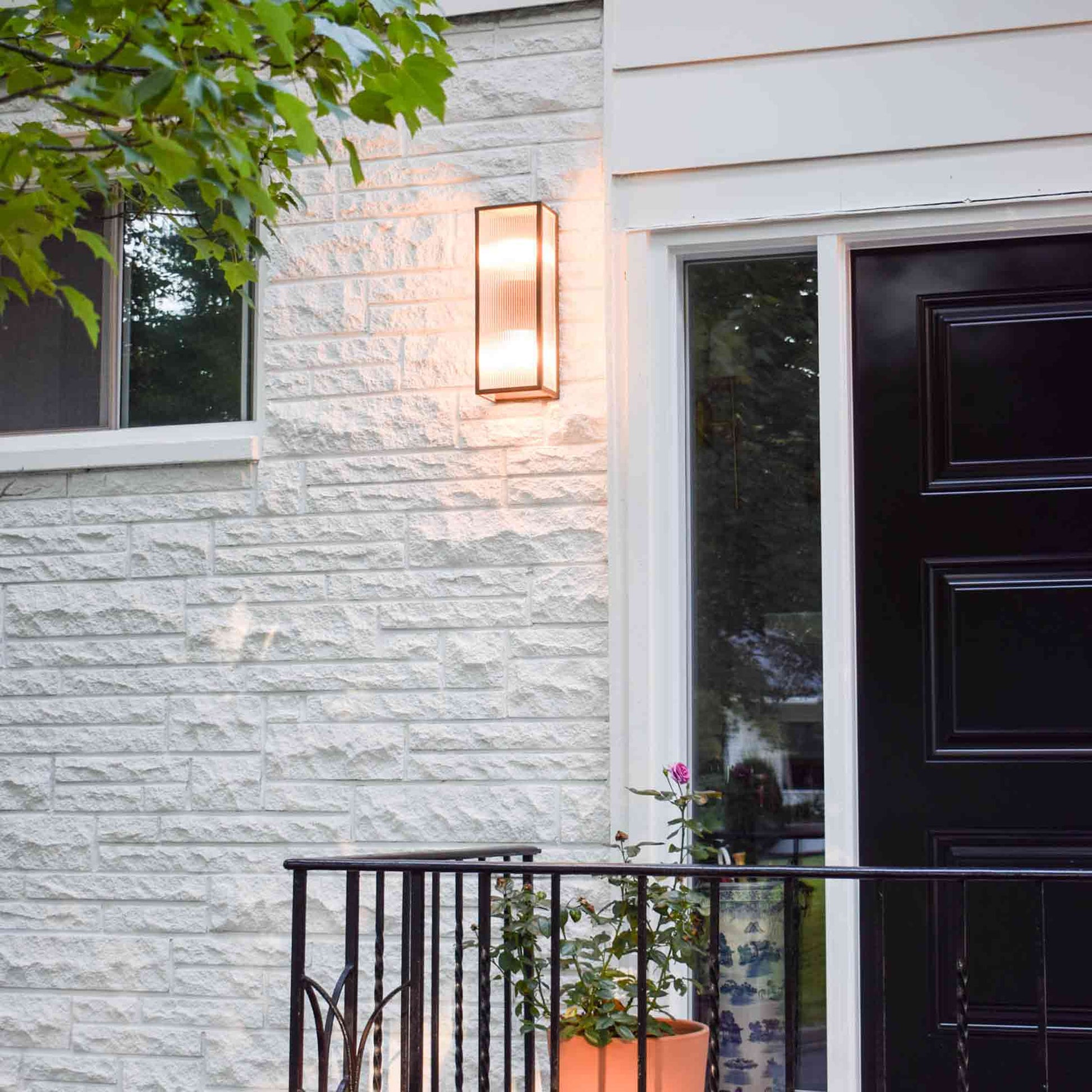 Ribbed glass adds grandeur to the vertical silhouette of the simple, sophisticated Tisoni Wall Light by Troy Lighting.