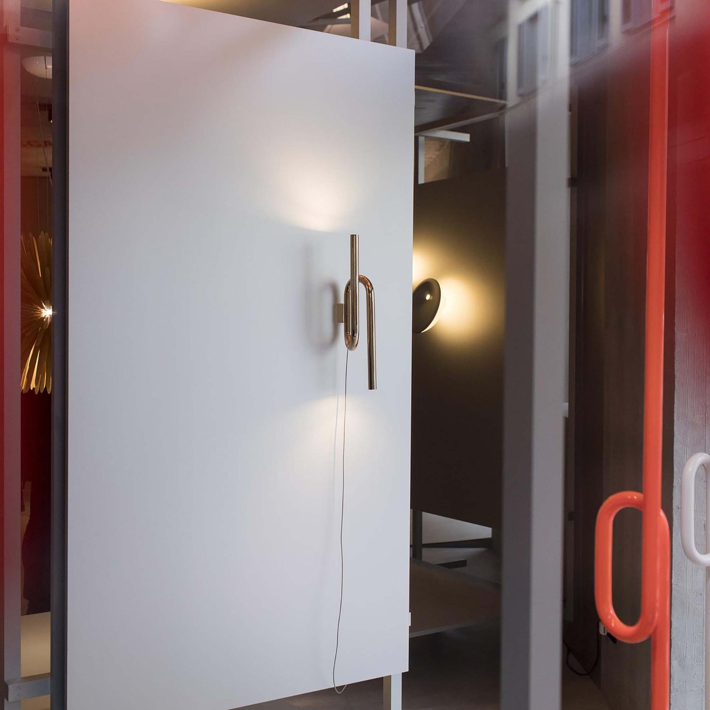 An alluring looped design creates a remarkable lighting source. The Tobia LED Wall Light from Foscarini is unmistakable with its extraordinary design lights up entryways, hallways, and living spaces.