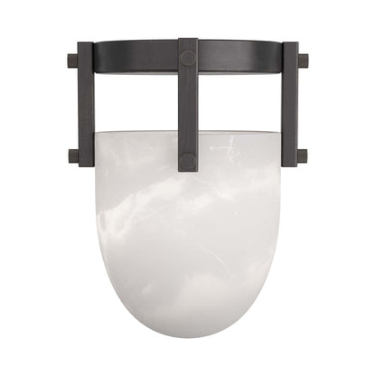 Explore a nuanced and novel approach to interior lighting with the Toren Semi-Flush Mount Ceiling Light from Arteriors. A utilitarian silhouette belies a fashionable domed white alabaster shade mounted to an industrial-influenced frame fashioned of English bronze ironwork. The combination is atypical and compelling, creating a statement-making fixture perfect for casual settings.
