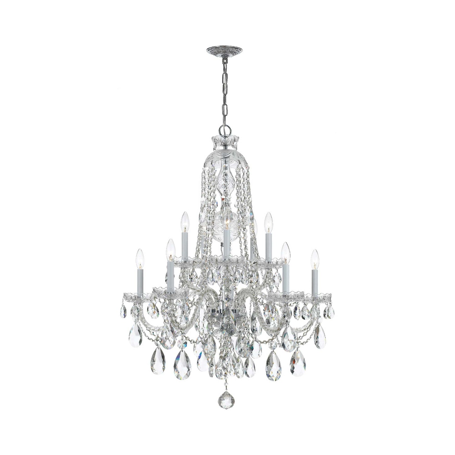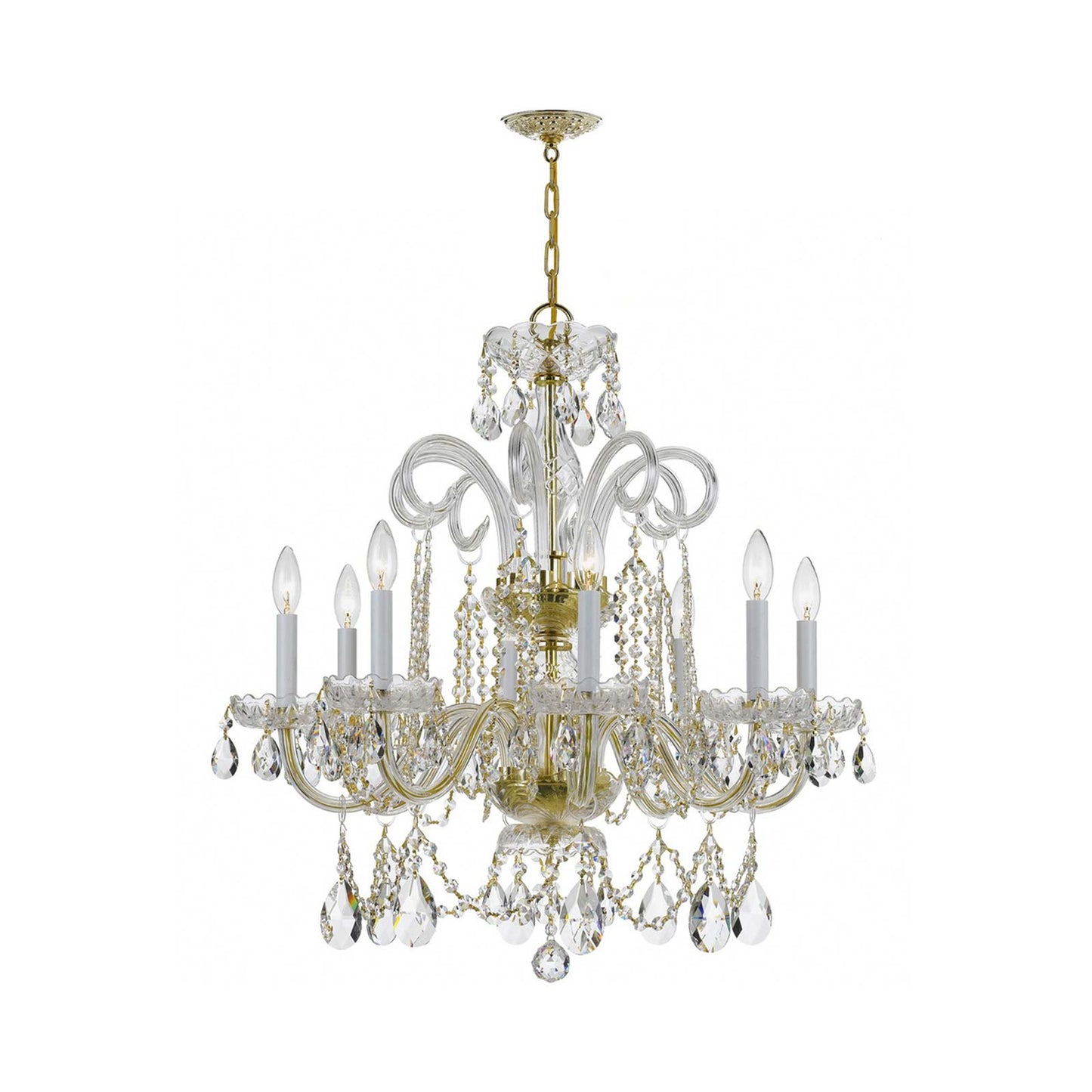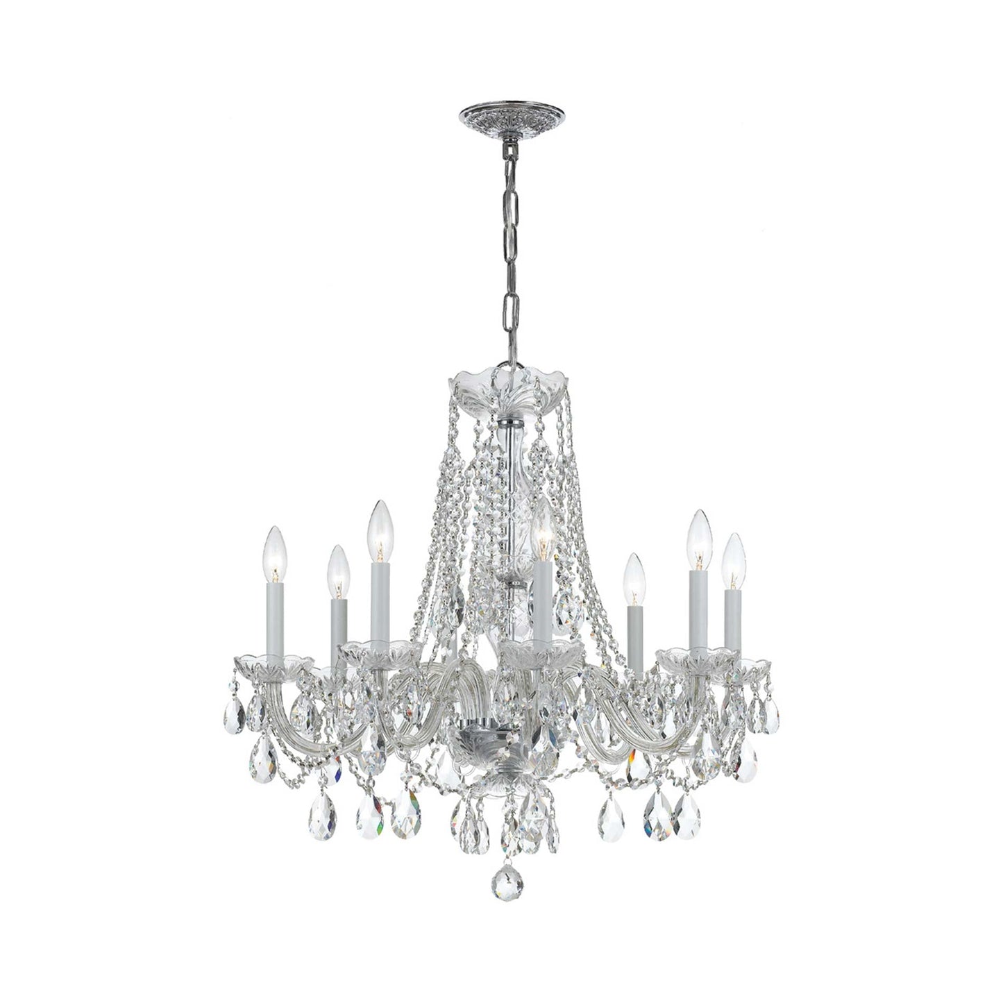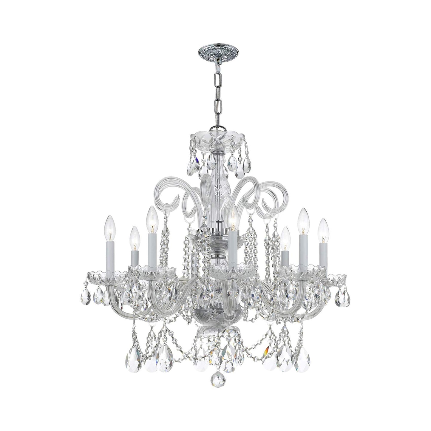 Take exuberant elegance to a new level with the luxurious look of the Traditional Crystal Chandelier from Crystorama. A classic mix of candelabra-style lighting and metal framing reinforces a beloved motif, with decadent and sparkling crystal accents and delicate strands of metal chains shaping an artisanal presence ideal for upscale dining areas and foyers.